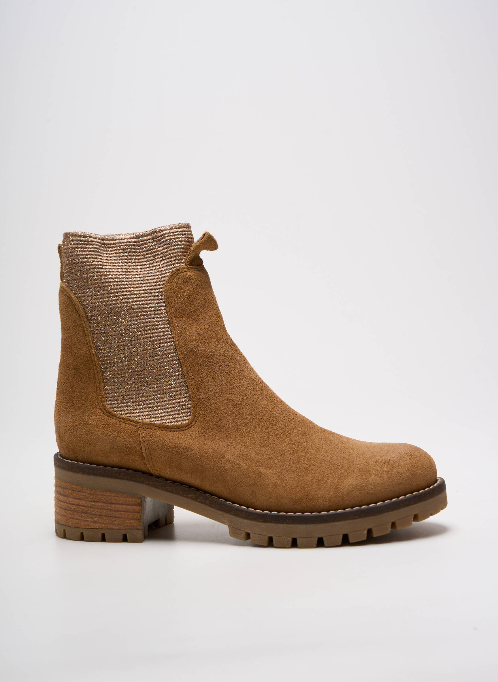 Craquez pour ces bottines MINKA DESIGN à prix tout doux, l’astuce idéale pour donner du style à vos tenues sans vous ruiner. Leur allure chic se distingue par une tige en suédine camel au toucher velouté, rehaussée d’un élégant empiècement élastiqué texturé qui apporte une touche moderne et assure une mise en place facile. Le talon épais, stable et confortable, allié à la semelle crantée, promet une démarche assurée au quotidien. Optez pour ce bon plan mode et faites rimer élégance avec économies !