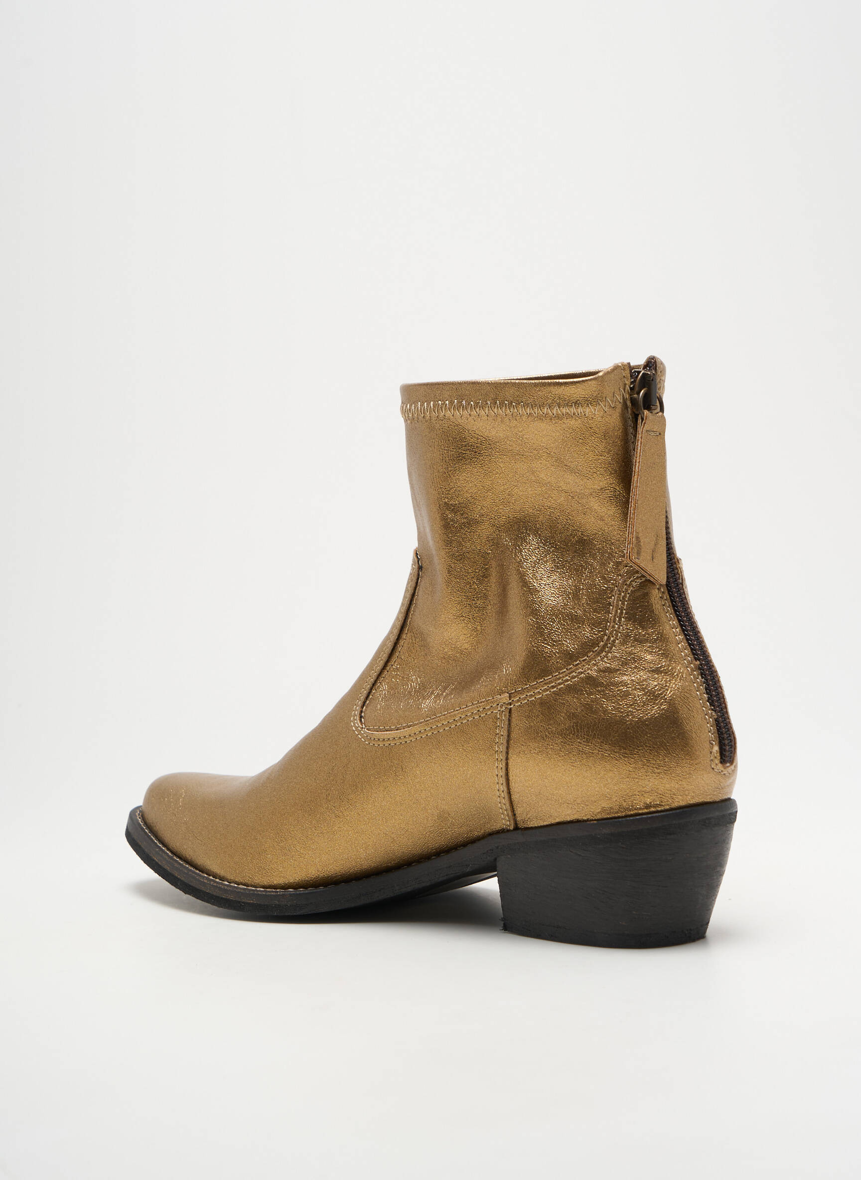 Profitez d’une offre irrésistible avec ces boots MINKA DESIGN pour femme à prix tout doux, parfaites pour donner du style à vos tenues sans vous ruiner. Leur silhouette légèrement vintage, rehaussée par une finition dorée élégamment patinée, apporte une touche tendance à vos looks du quotidien. Le talon bas et la coupe épurée garantissent un confort optimal du matin jusqu’au soir, tandis que le zip arrière facilite l’enfilage. Ces bottines sont la solution idéale pour allier élégance et économie à chaque pas.