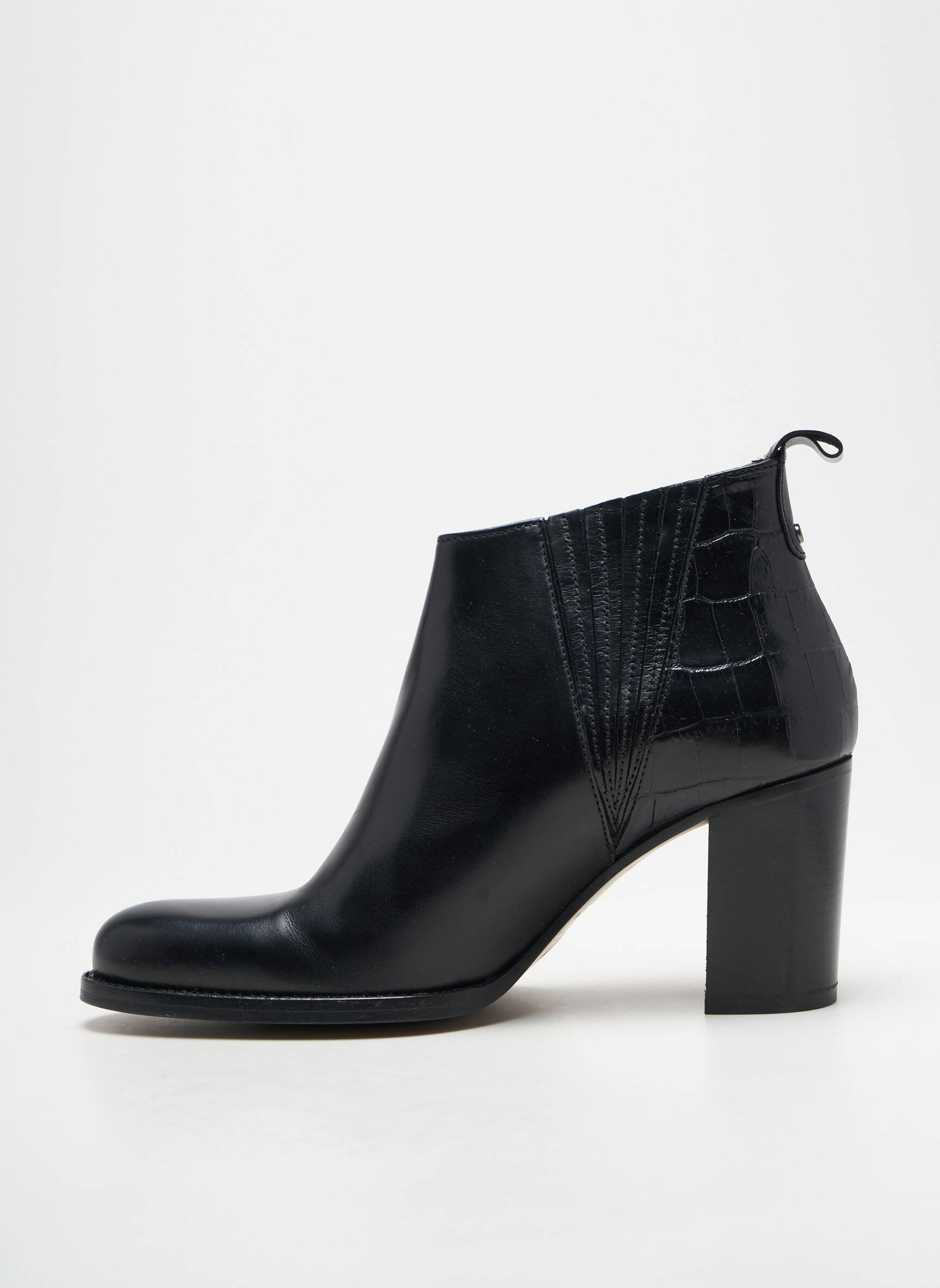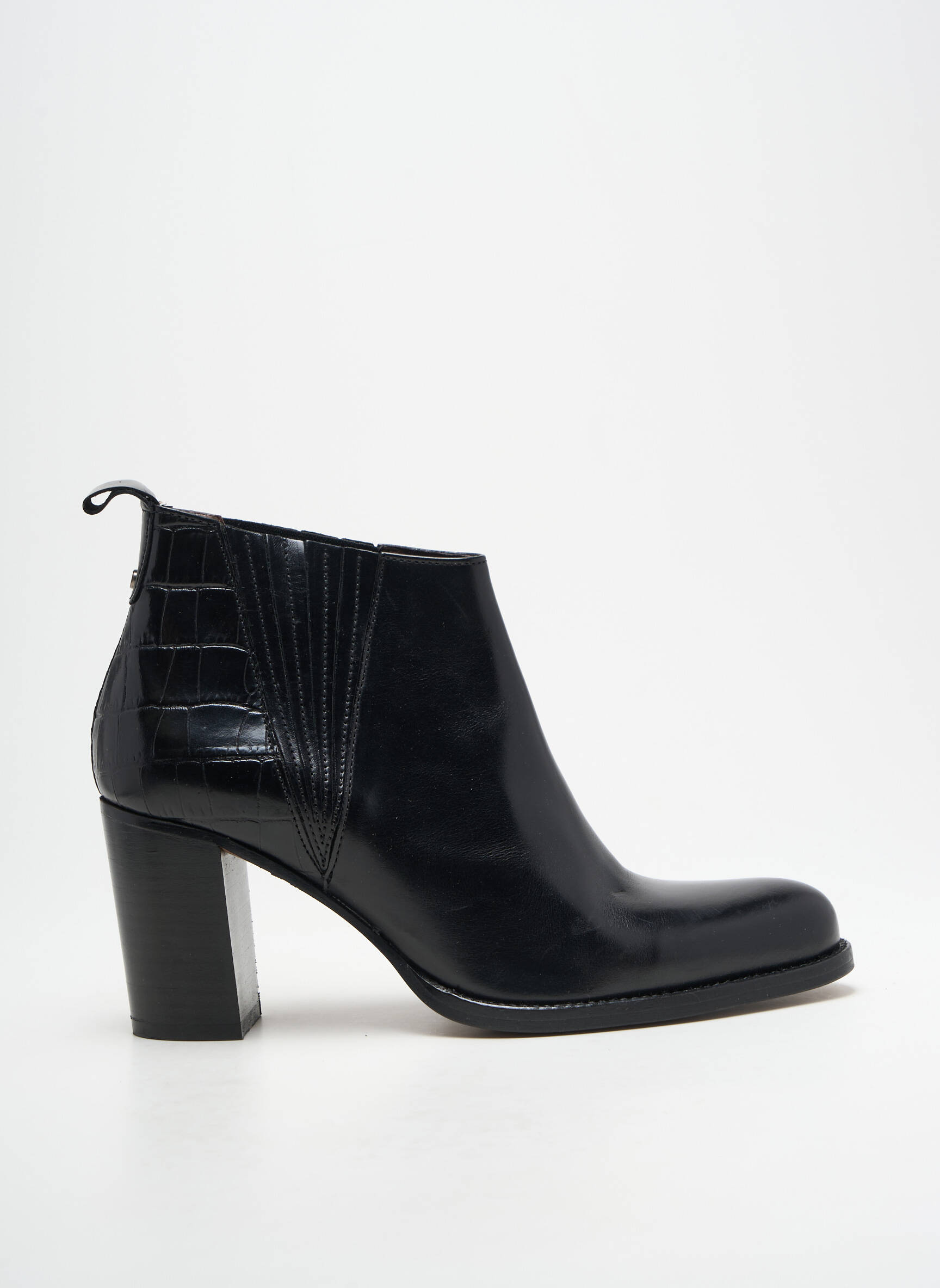 Craquez pour ces bottines Muratti pour femme qui allient élégance et modernité à prix mini, idéales pour sublimer toutes vos tenues sans vous ruiner. Leur cuir lisse noir effet verni, rehaussé d’un empiècement façon croco à l’arrière, leur donne une allure raffinée et tendance, tandis que leur talon épais assure un confort optimal au quotidien. Profitez de cette offre exceptionnelle pour ajouter une touche chic à votre dressing sans compromis sur la qualité.