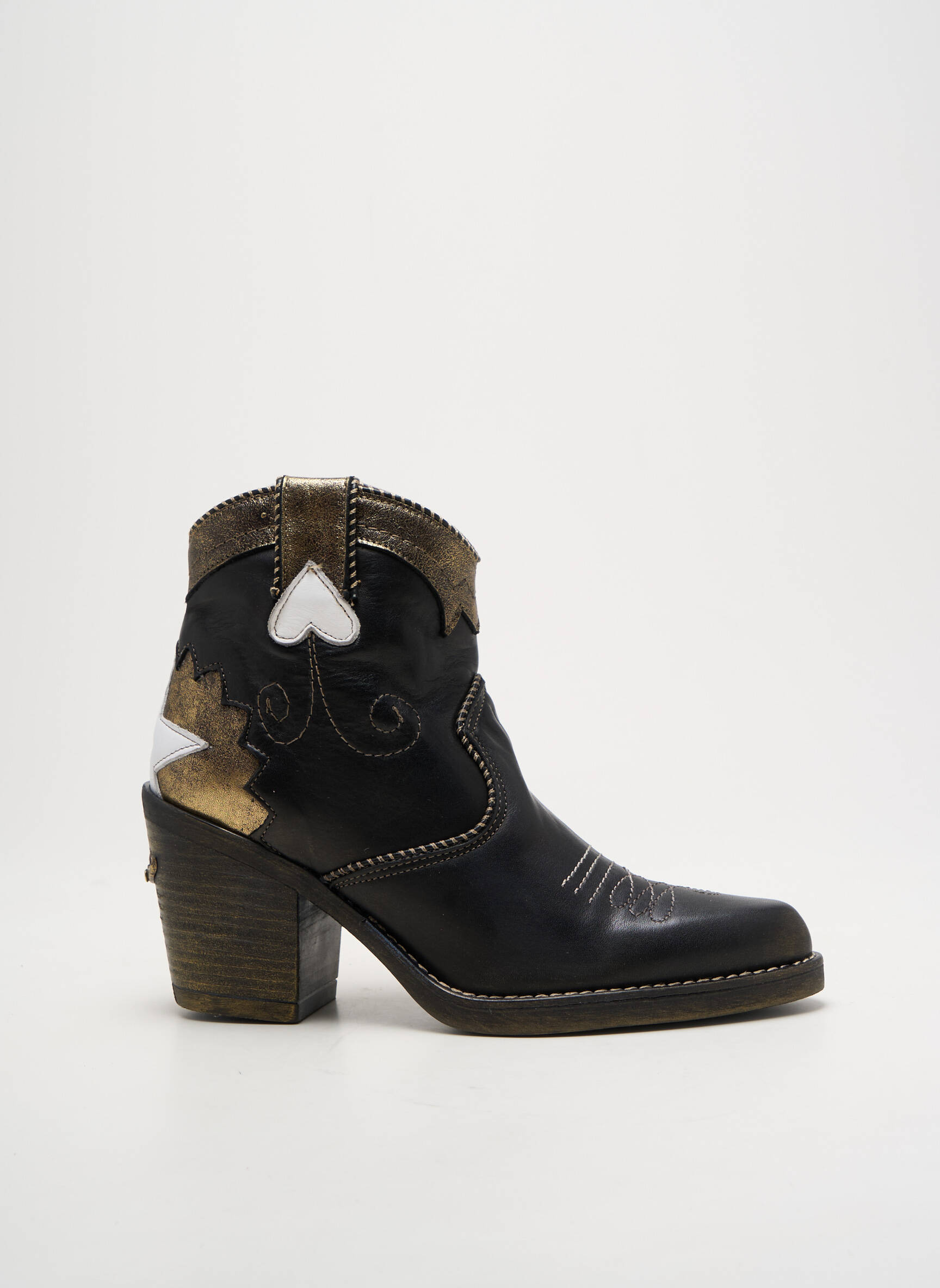 Profitez d’un bon plan irrésistible avec cette paire de bottines Nemonic pour femme, au style western revisité et original, parfait pour apporter une touche de caractère à toutes vos tenues. Avec leurs détails dorés et argentés ainsi que leurs motifs contrastés, elles se démarquent par leur look tendance et leur excellent rapport qualité-prix, l'occasion idéale de s’offrir un modèle unique sans se ruiner.