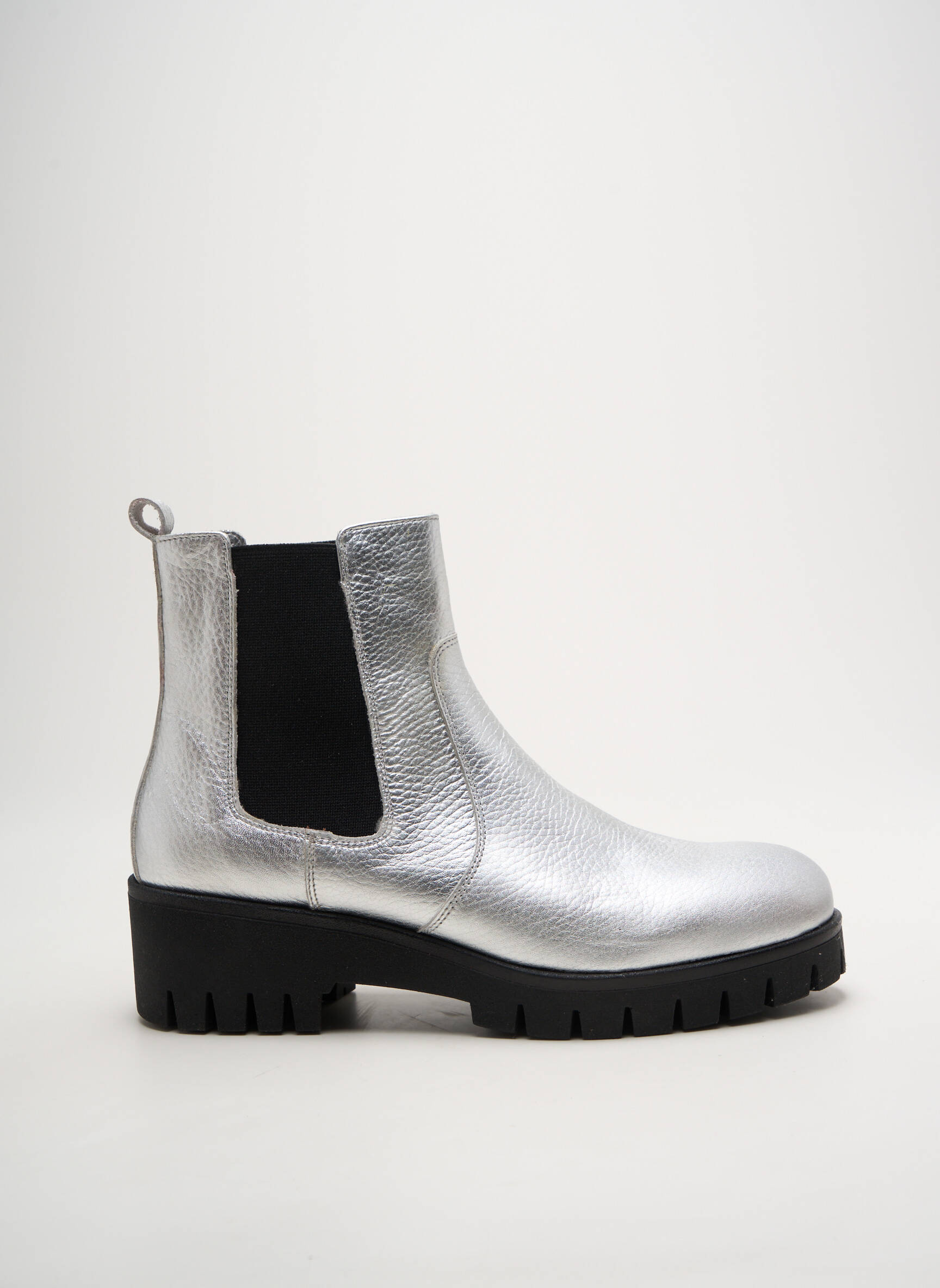 Craquez pour un look tendance à prix mini avec ces bottines OTTILIA pour femme, idéales pour donner du style à toutes vos tenues sans vous ruiner. Avec leur finition argentée métallisée ultra moderne et leurs empiècements élastiqués noirs, ces boots affichent un design original tout en garantissant un confort et une grande praticité au quotidien. Leur semelle crantée épaisse apporte une touche contemporaine et assure une bonne stabilité, faisant de ces bottines un choix malin et économique pour dynamiser votre garde-robe saisonnière.