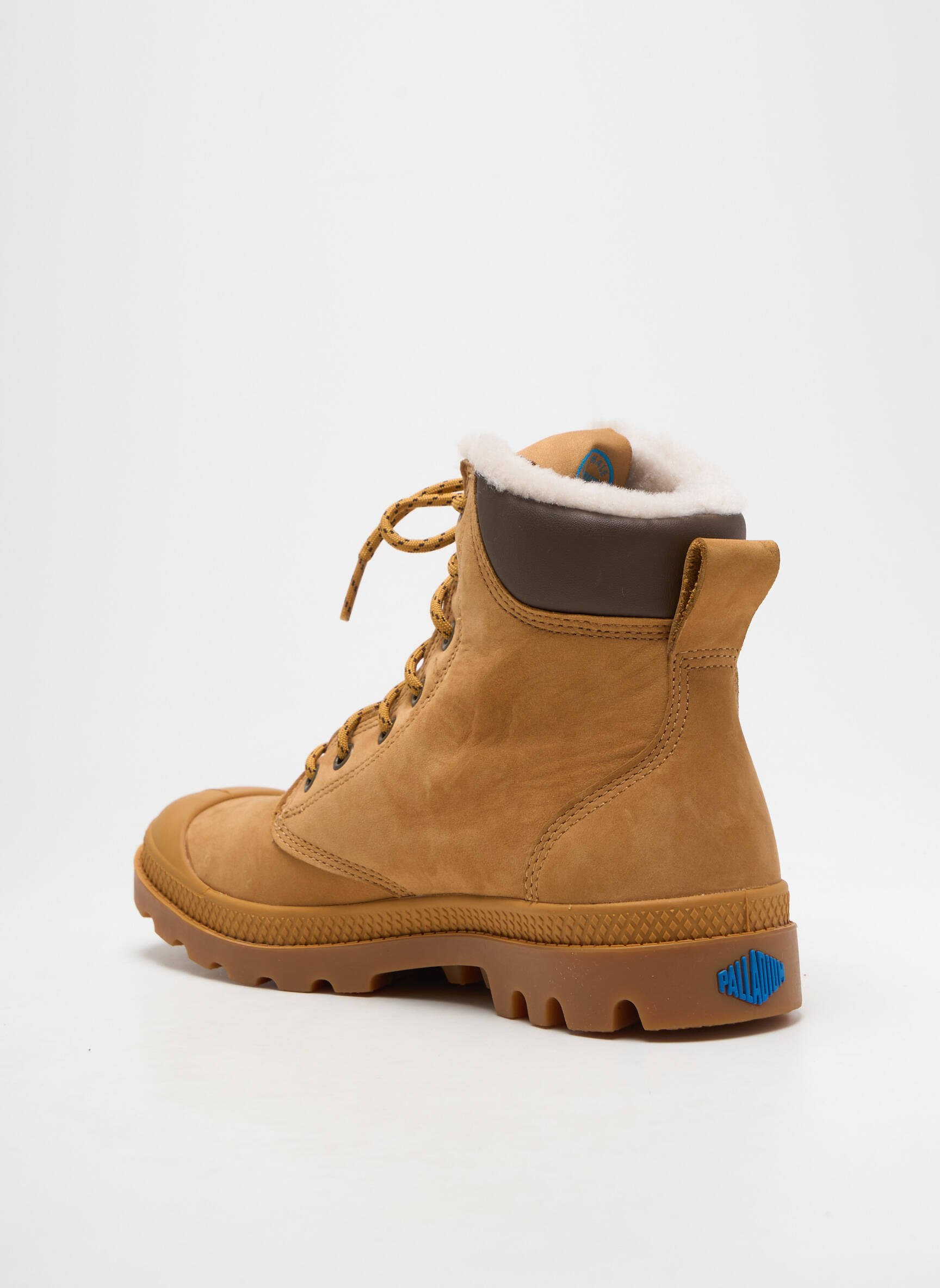 Voici l'occasion parfaite de vous offrir des boots PALLADIUM pour femme à prix doux : ce modèle iconique séduit par sa tige montante en cuir effet nubuck couleur camel, relevée par un col matelassé contrasté et une doublure duveteuse qui assure un confort optimal tout au long de la journée. Dotée d'une semelle crantée robuste et de lacets solides, cette paire allie style urbain et praticité pour un look tendance sans vous ruiner. Profitez de ce bon plan pour adopter la touche aventurière signée Palladium, à petit prix !