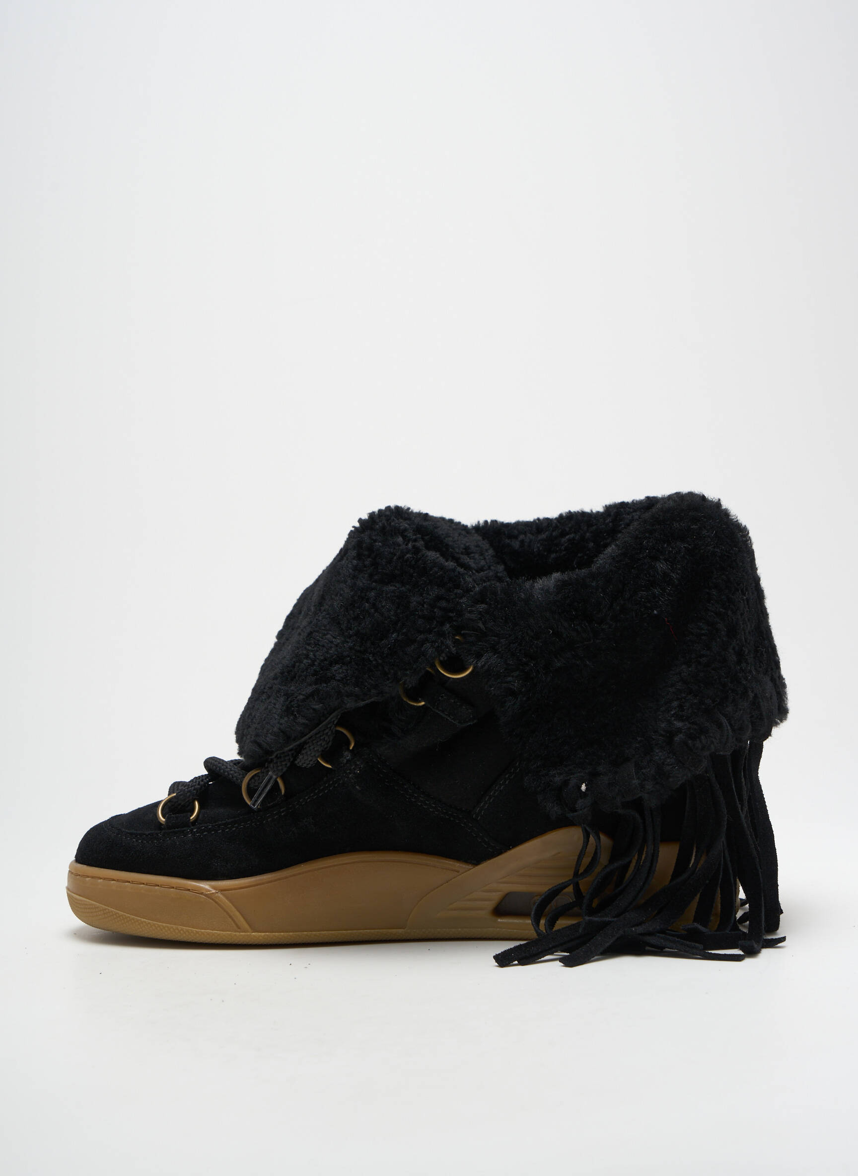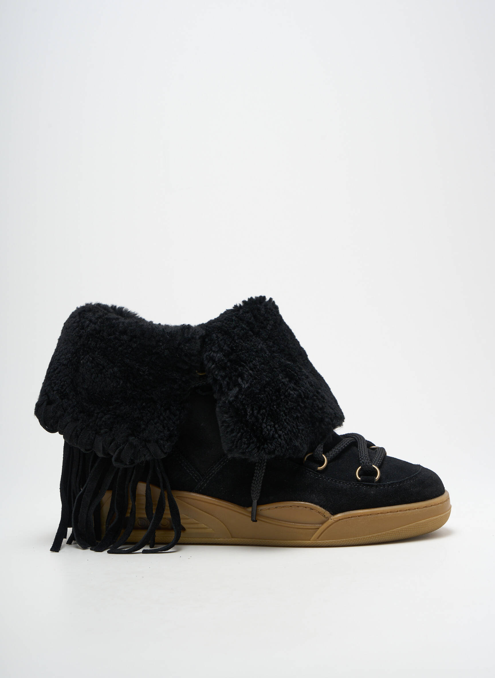 Craquez pour ces bottines SERAFINI pour femme et offrez-vous une pièce originale à prix mini, idéale pour faire la différence cet hiver sans vous ruiner. Leur look tendance combine une base noire élégante en suédine, rehaussée d’un revers en fausse fourrure pour une touche cocooning, tandis que les détails à franges et le laçage stylé apportent un charme urbain unique. Avec leur semelle contrastante, ces boots allient confort et esprit moderne, parfaites pour sublimer vos tenues tout en réalisant une belle économie sur une marque reconnue.