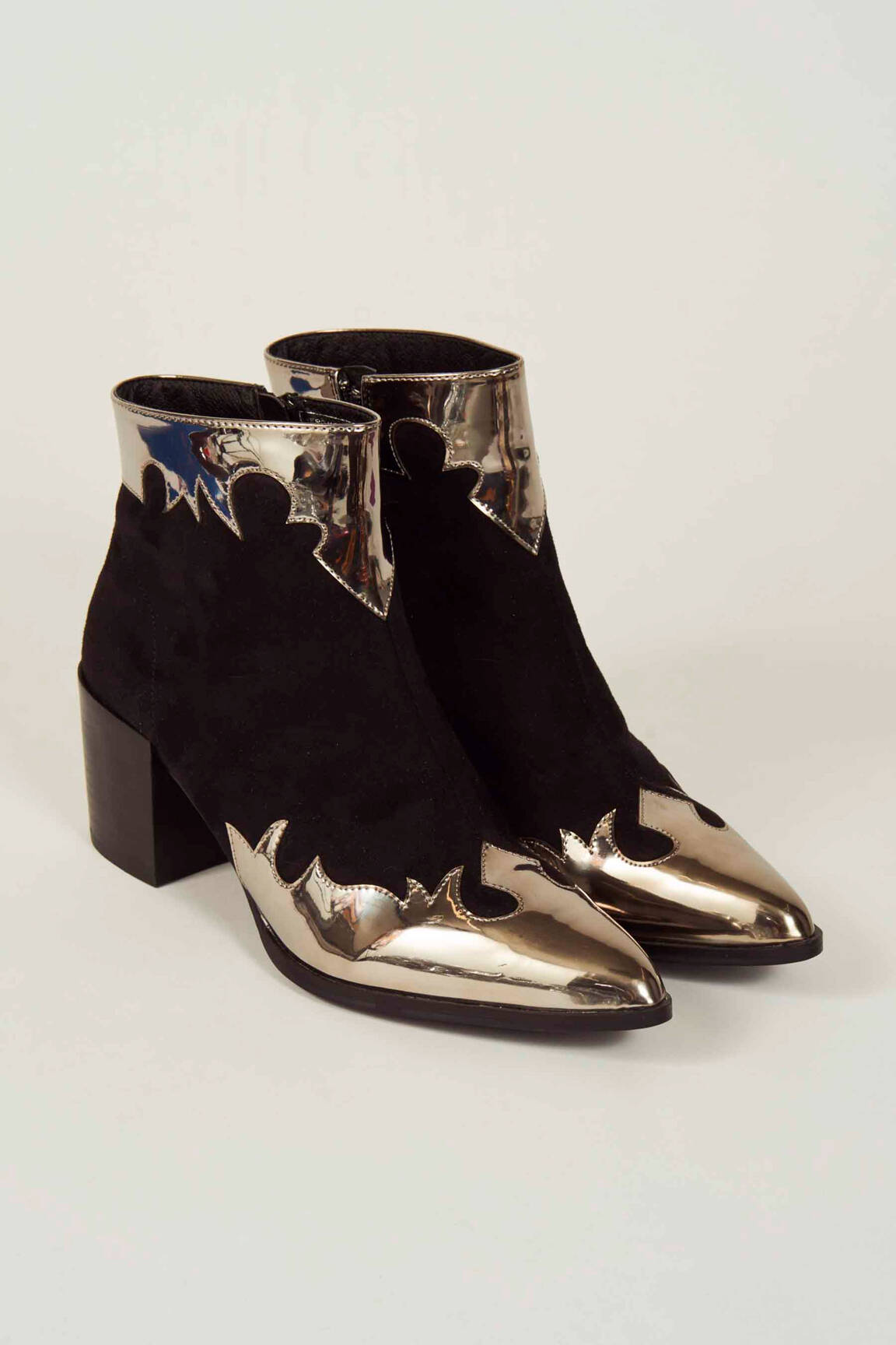 Voici une occasion à ne pas manquer pour donner du style à vos tenues tout en faisant des économies avec ces bottines VERO MODA pour femme, qui mixent élégamment un effet suédé noir et des détails argentés métallisés ultra tendance. Leur design audacieux, associé à un talon carré confortable, apporte une touche contemporaine à votre look tout en restant facile à porter au quotidien et à un prix imbattable sur notre site.