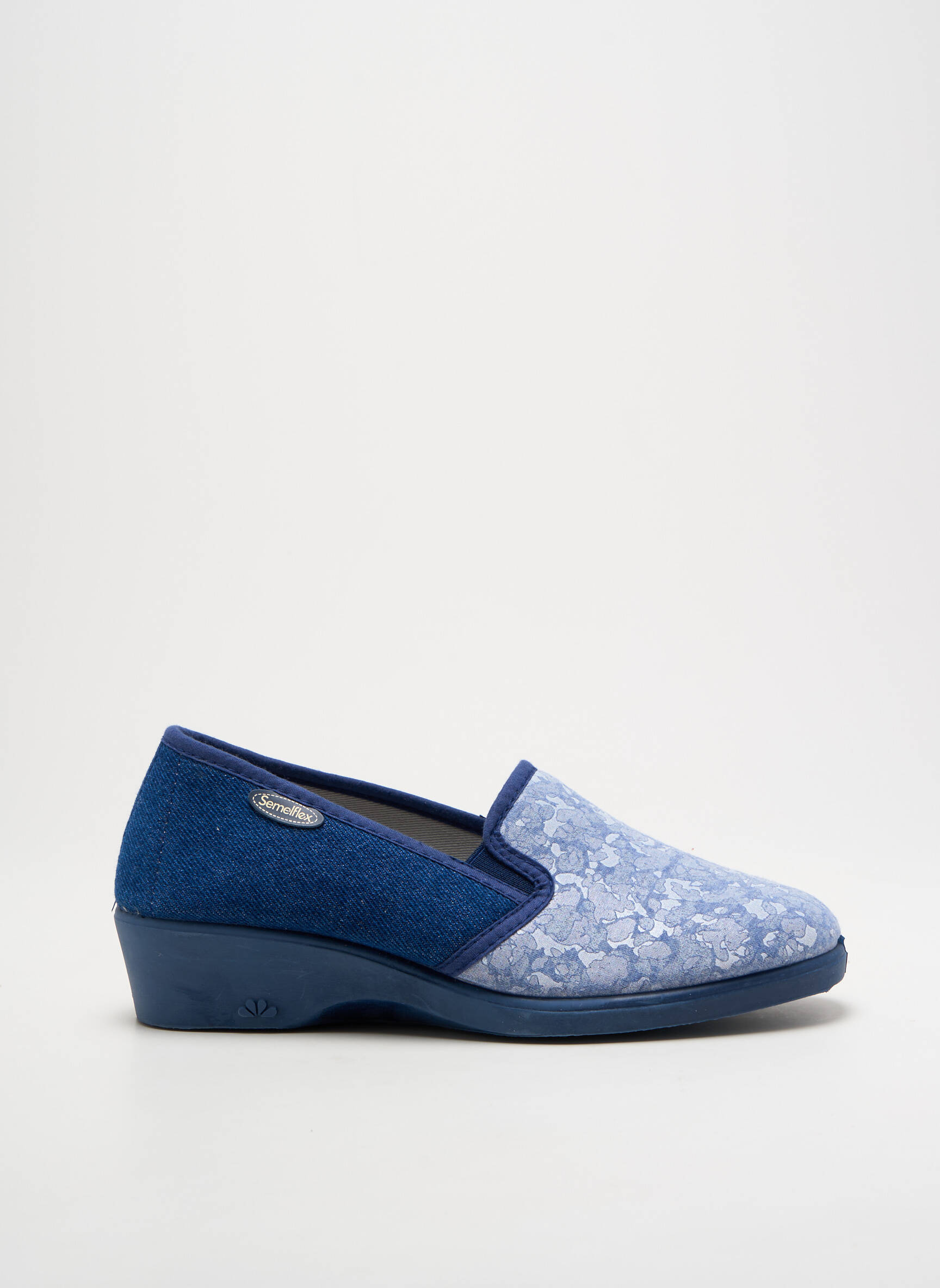Profitez d’un vrai bon plan avec ces chaussons pour femme de la marque SEMELFLEX, un modèle alliant confort et prix doux. Leur design élégant mêle un textile bleu à motifs délicats et une semelle légèrement compensée pour un maintien parfait au quotidien. C’est l’achat malin pour cocooner à petit prix tout en ajoutant une touche de style à vos moments de détente à la maison.