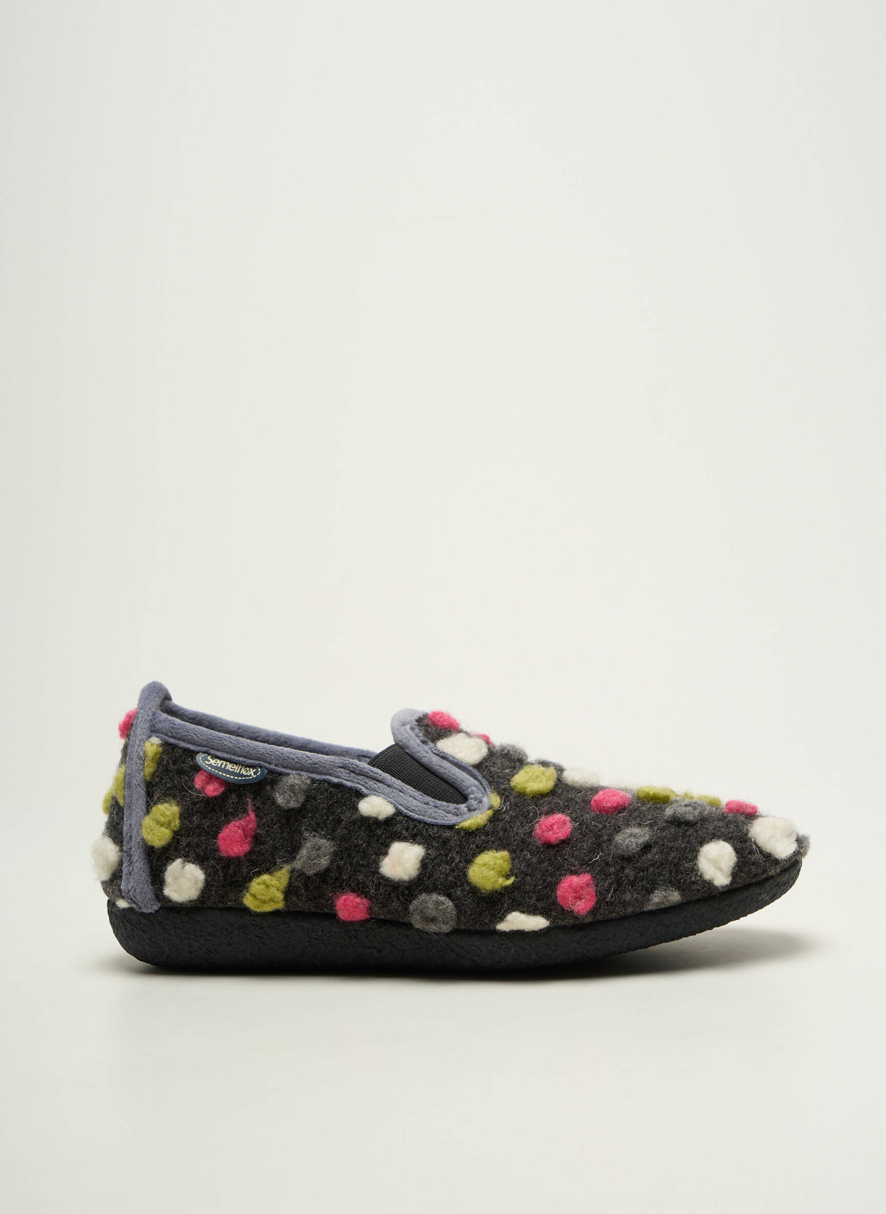 Profitez d’un vrai bon plan avec ces chaussons pour femme de la marque Semelflex, parfaits pour chouchouter vos pieds sans vous ruiner. Leur matière toute douce au toucher et leur couleur sombre rehaussée de pois multicolores apportent une note joyeuse à vos moments de détente à la maison, tout en garantissant un confort optimal et une allure tendance à petit prix.