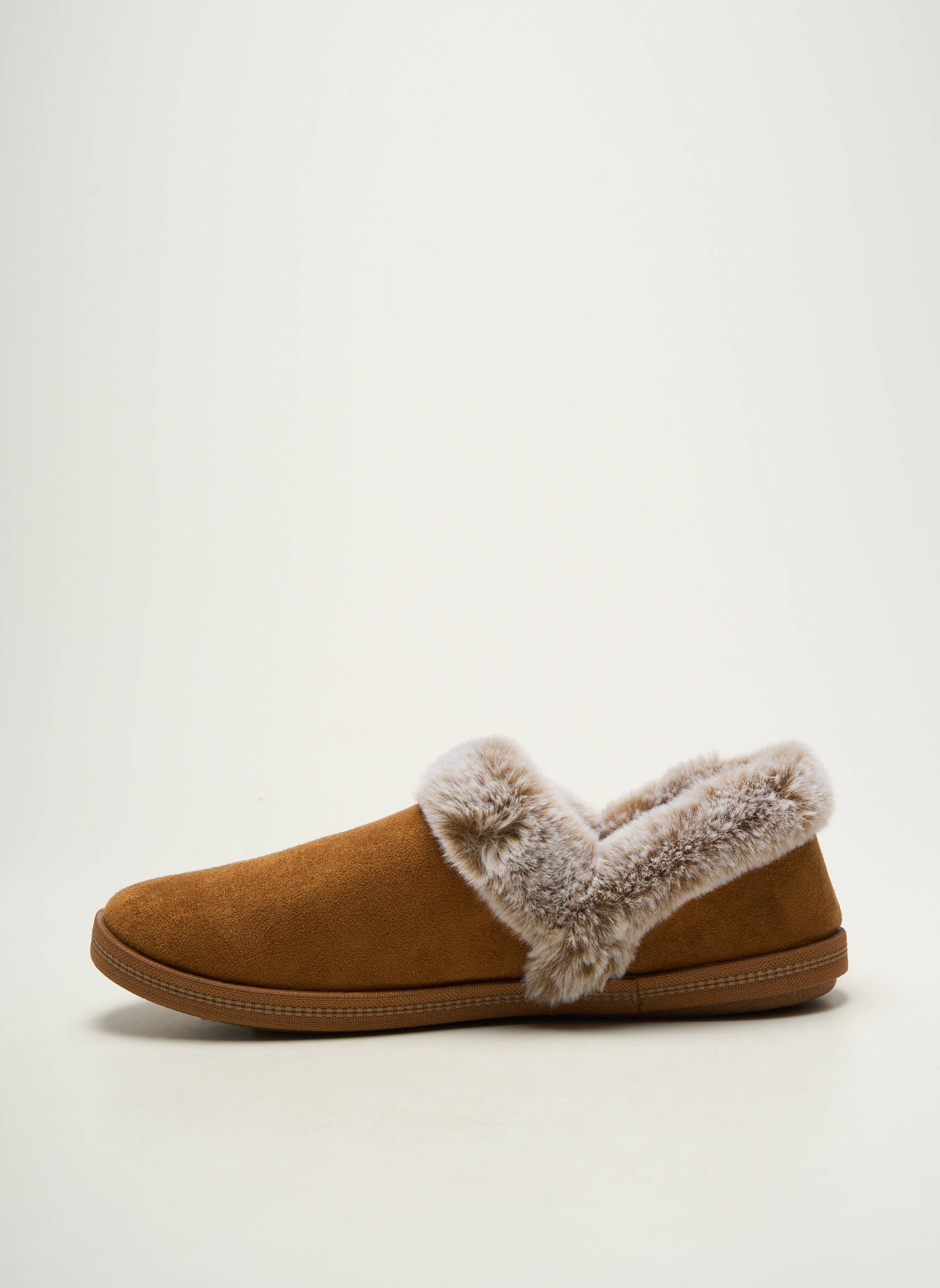 Profitez d’un excellent rapport qualité-prix avec ces chaussons SKECHERS pour femme qui allient douceur et élégance, grâce à leur finition en suédine camel et leur intérieur doublé d’une fausse fourrure ultra moelleuse, surmontée d’un joli bouton décoratif pour un effet cosy garanti, parfaits pour se faire plaisir sans se ruiner.