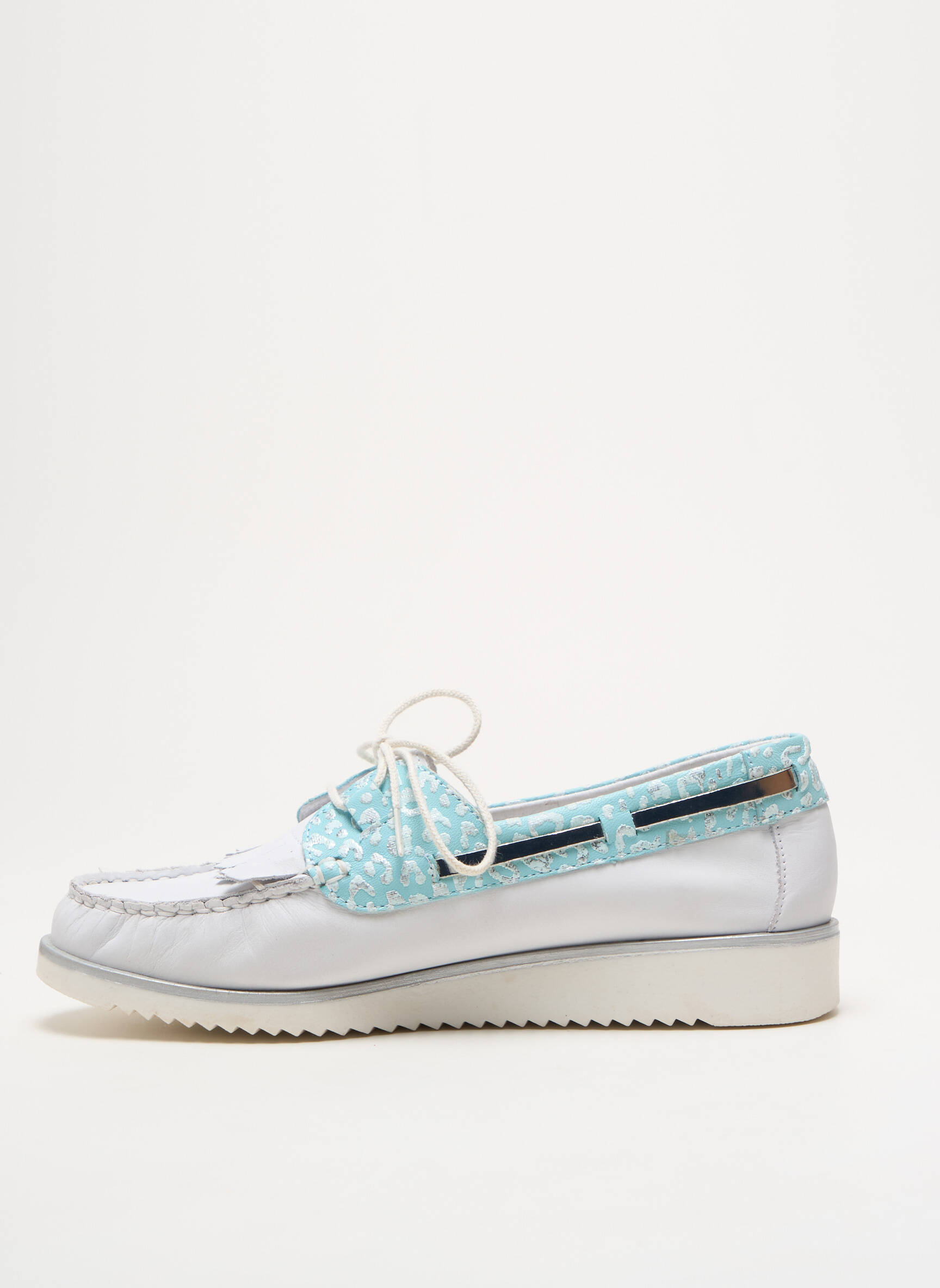 Profitez d’un bon plan irrésistible avec ces chaussures bateau PEDI GIRL pour femme, qui mêlent élégance décontractée et confort à prix tout doux. La finition en deux matières joue sur les contrastes avec des touches turquoise à motif qui dynamisent ce modèle classique, tandis que le dessus blanc reste facile à assortir à toutes vos tenues estivales. Grâce à leur semelle crantée, vous bénéficiez d’une marche légère tout au long de la journée, le tout sans vous ruiner.