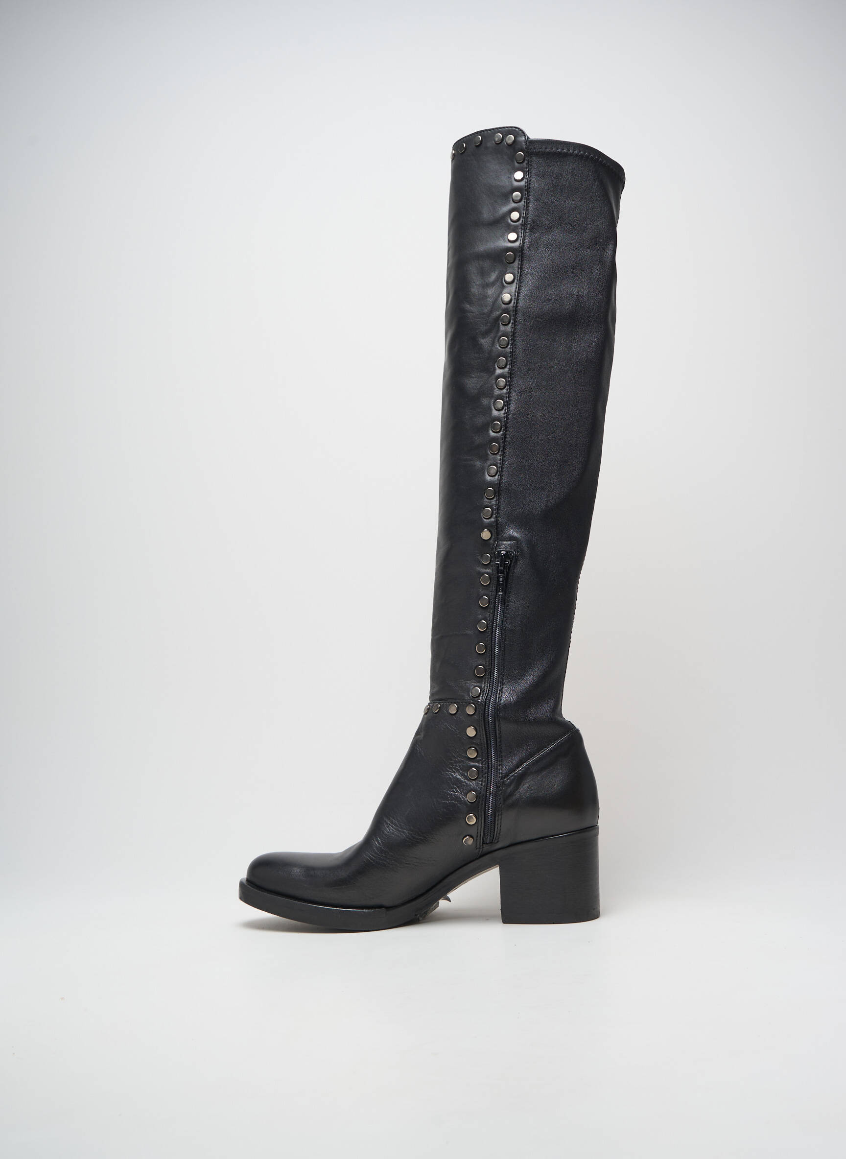 Profitez d’une véritable affaire mode avec ces cuissardes de la marque FRU.IT pour femme, l’occasion idéale de vous offrir une pièce tendance sans vous ruiner. Avec leur allure élégante et leur ligne élancée, ces bottes montantes affichent une finition noire intemporelle, rehaussée par une rangée de petits rivets métalliques qui ajoutent une touche rock chic à votre look. Leur talon stable assure un confort au quotidien, tandis que le design soigné souligne la silhouette avec raffinement. C’est le bon plan parfait pour affirmer votre style sans compromis sur la qualité ni sur le prix.