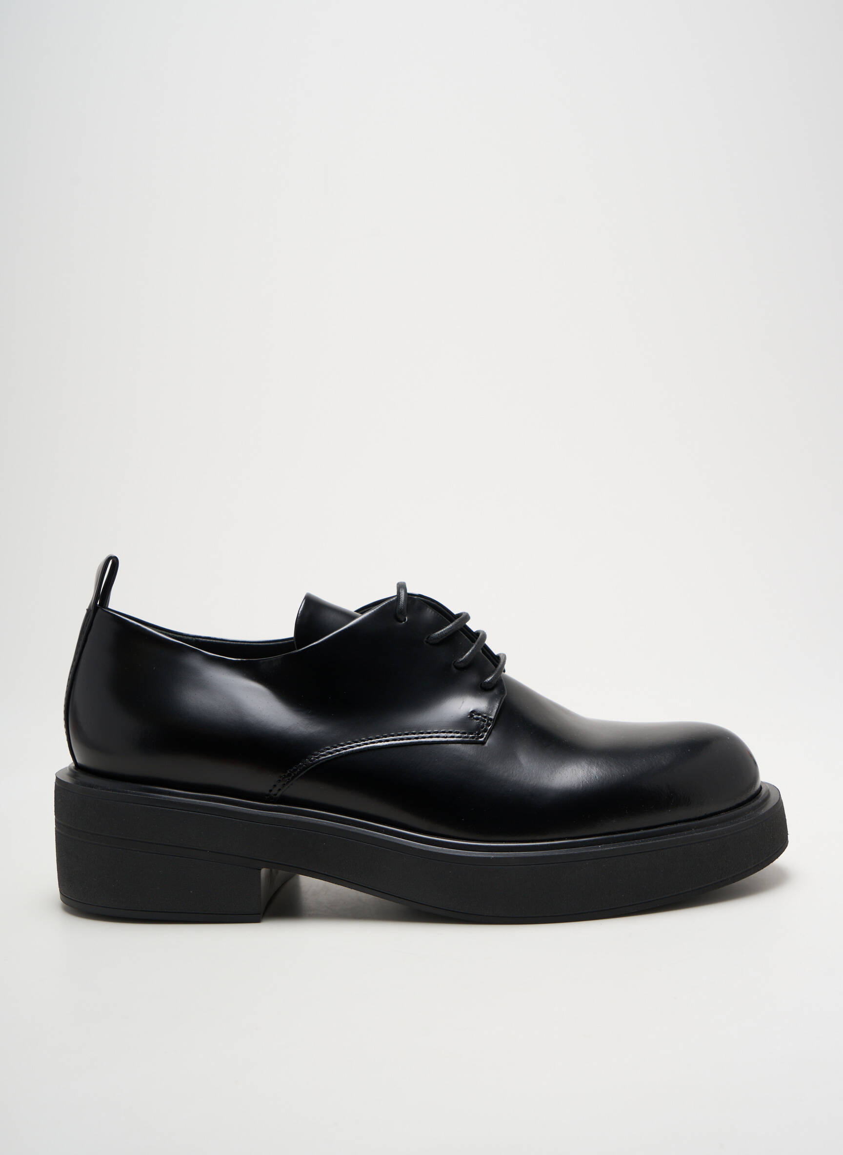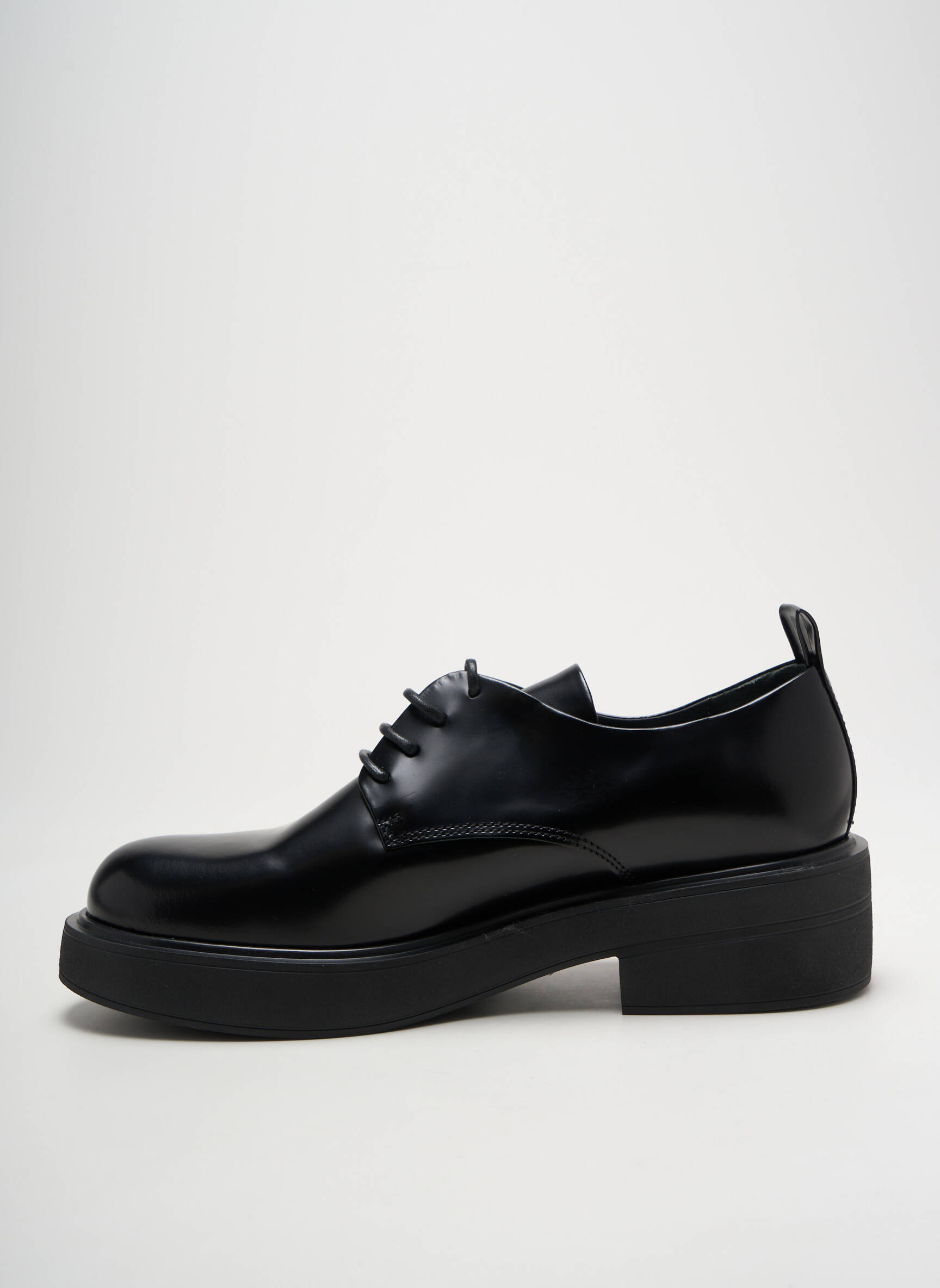 Craquez pour ces derbies FRU.IT à prix mini, une véritable opportunité pour donner du style à toutes vos tenues sans vous ruiner. Leur silhouette élégante et intemporelle, mise en valeur par un cuir noir brillant et une semelle épaisse légèrement crantée, apporte une touche chic et moderne à chaque look, tout en assurant un confort au quotidien. Profitez de cette pièce tendance et facile à assortir à un tarif défiant toute concurrence.