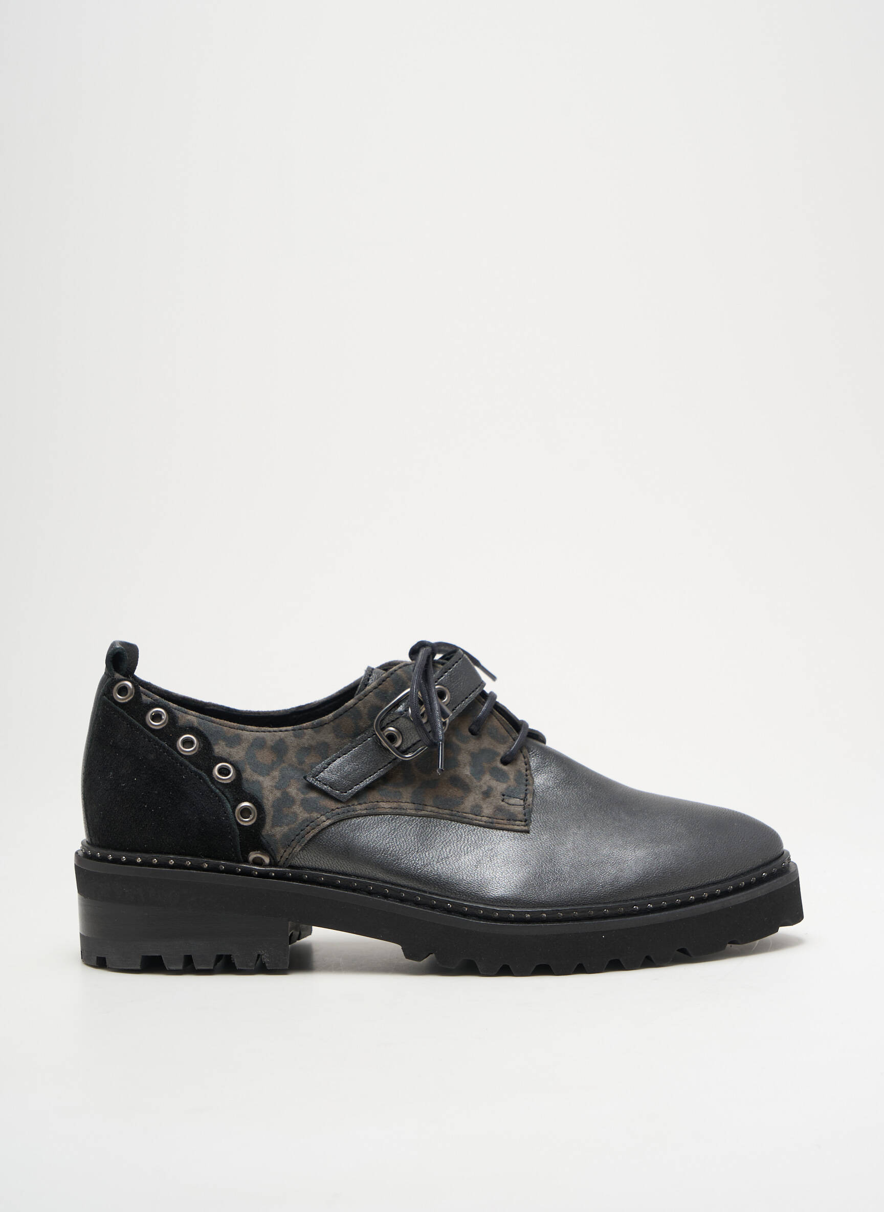 Voici l’occasion rêvée de craquer sans se ruiner pour un look tendance avec cette paire de derbies REGARD pour femme, parfaite alliance de style et de petit prix. Avec son cuir au fini patiné, ses œillets métalliques et son empiècement à motif animalier, cette chaussure allie caractère et féminité, tout en assurant un confort optimal grâce à sa semelle épaisse crantée, idéale pour les journées actives. Saisissez vite ce bon plan pour booster votre dressing sans compromis sur l’originalité et l’élégance.