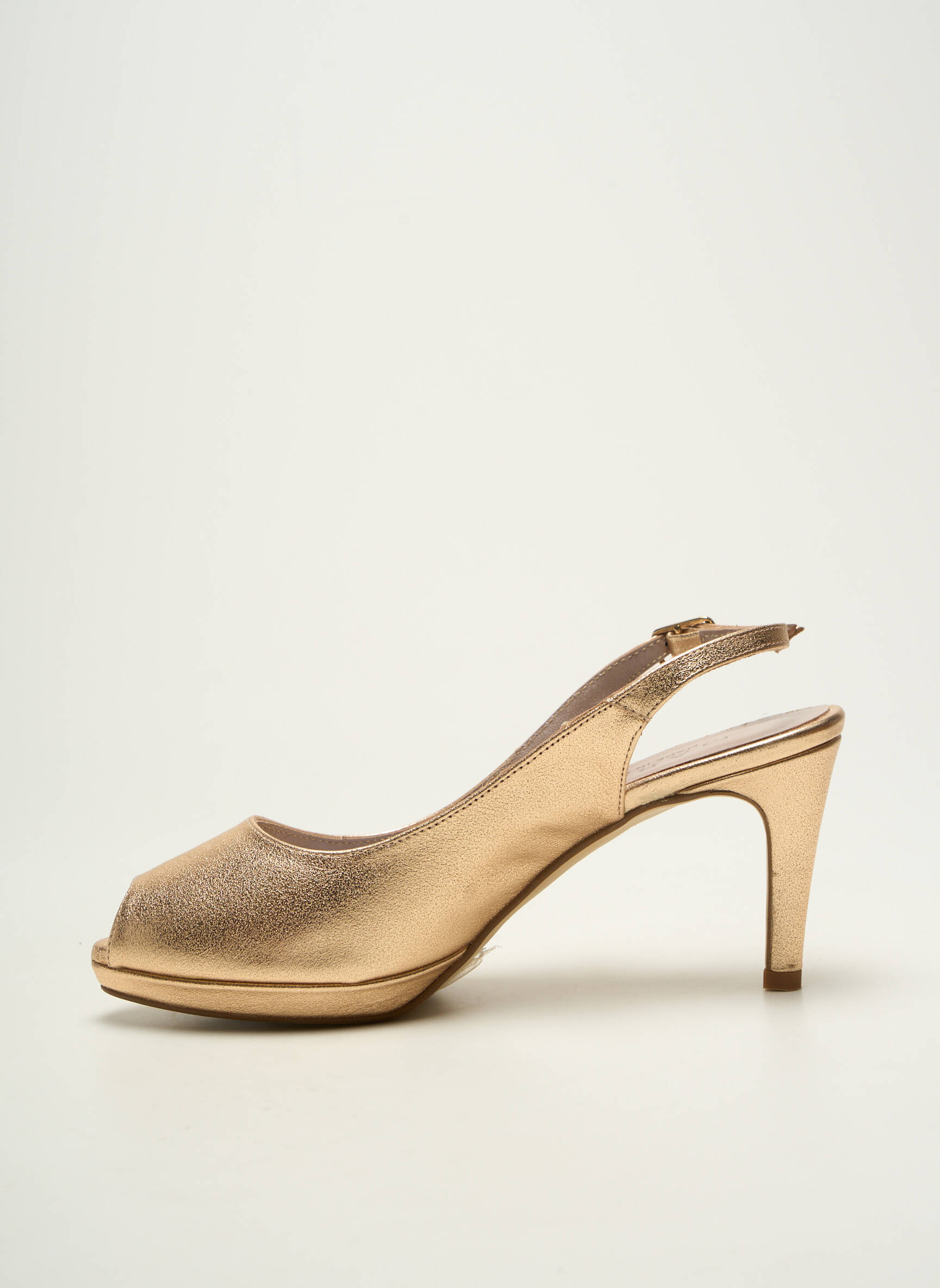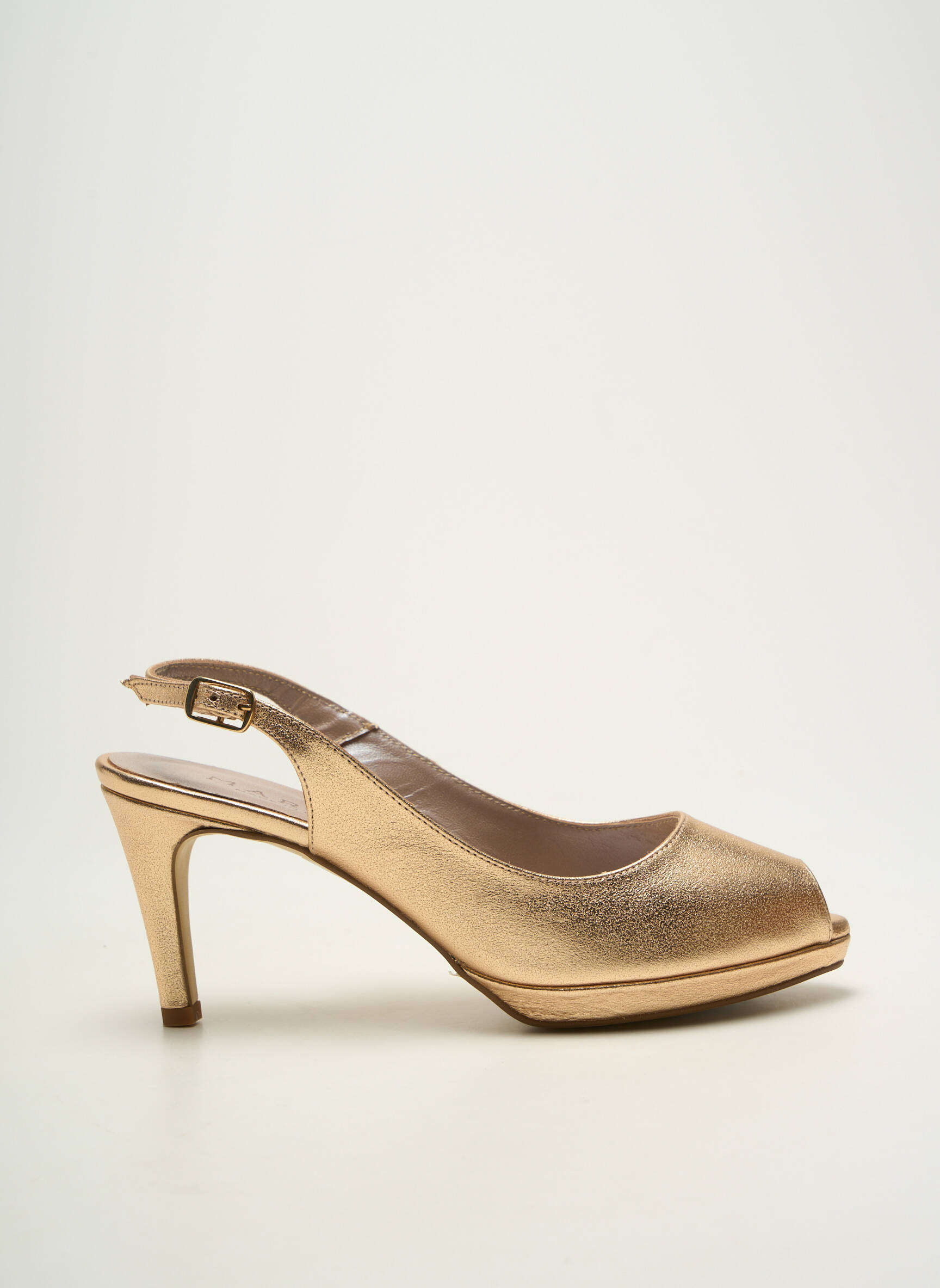 Saisissez l’occasion de vous offrir ces escarpins pour femme signés MARIAN à prix mini, parfaits pour ajouter une touche lumineuse à vos tenues sans vous ruiner. Leur jolie teinte dorée, la bride ajustable à l’arrière et le bout ouvert mettent en valeur votre féminité tout en garantissant élégance et confort lors de vos plus belles occasions.