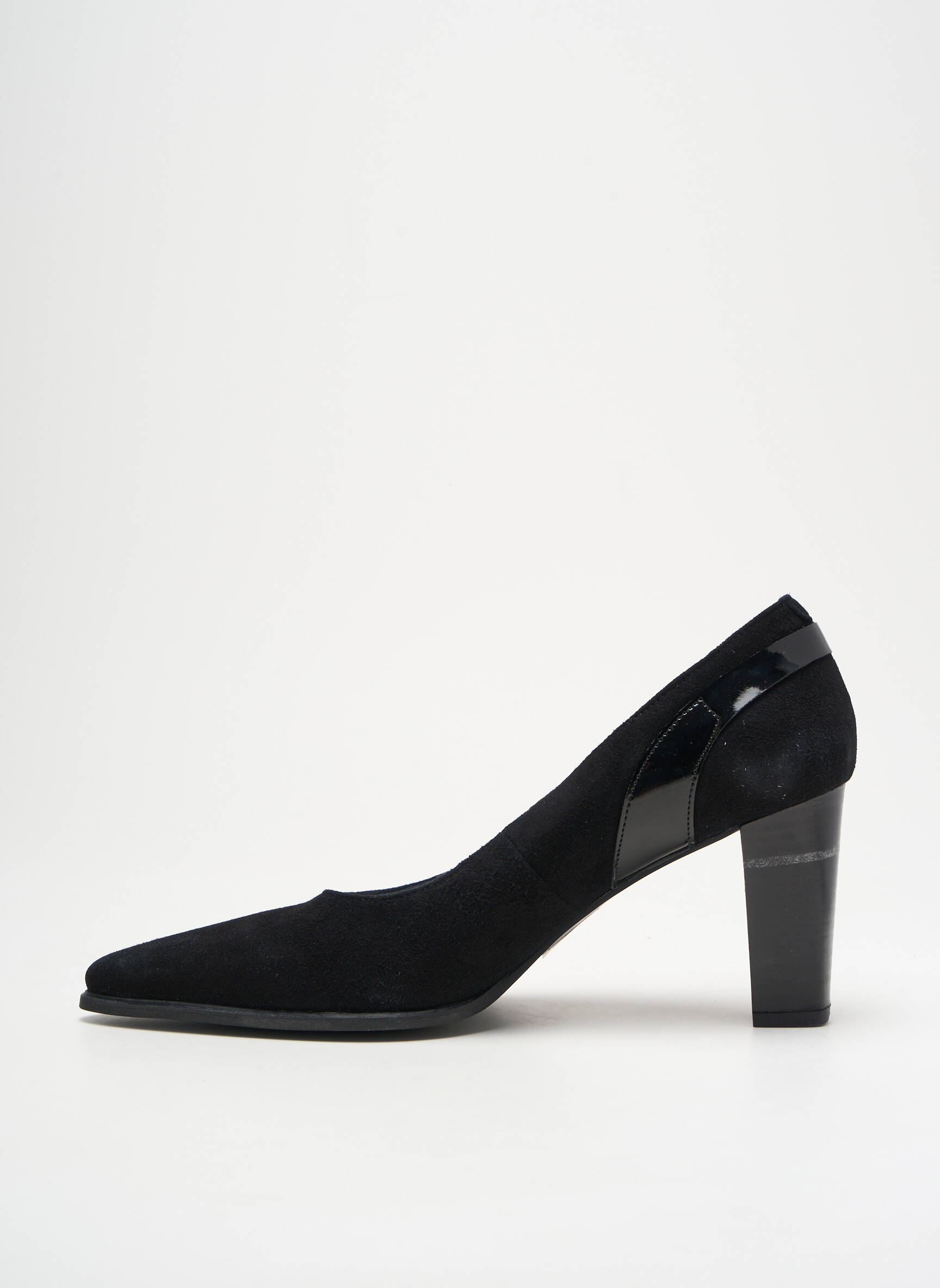Profitez d'une belle opportunité d'ajouter une touche d’élégance à votre garde-robe sans vous ruiner avec cet escarpin MYMA pour femme, un modèle raffiné au bout pointu, habillé d’un revêtement noir mat et rehaussé de détails brillants à l’arrière qui viennent jouer la carte de la subtilité chic, le tout monté sur un talon carré stable pour allier style et confort à prix mini.