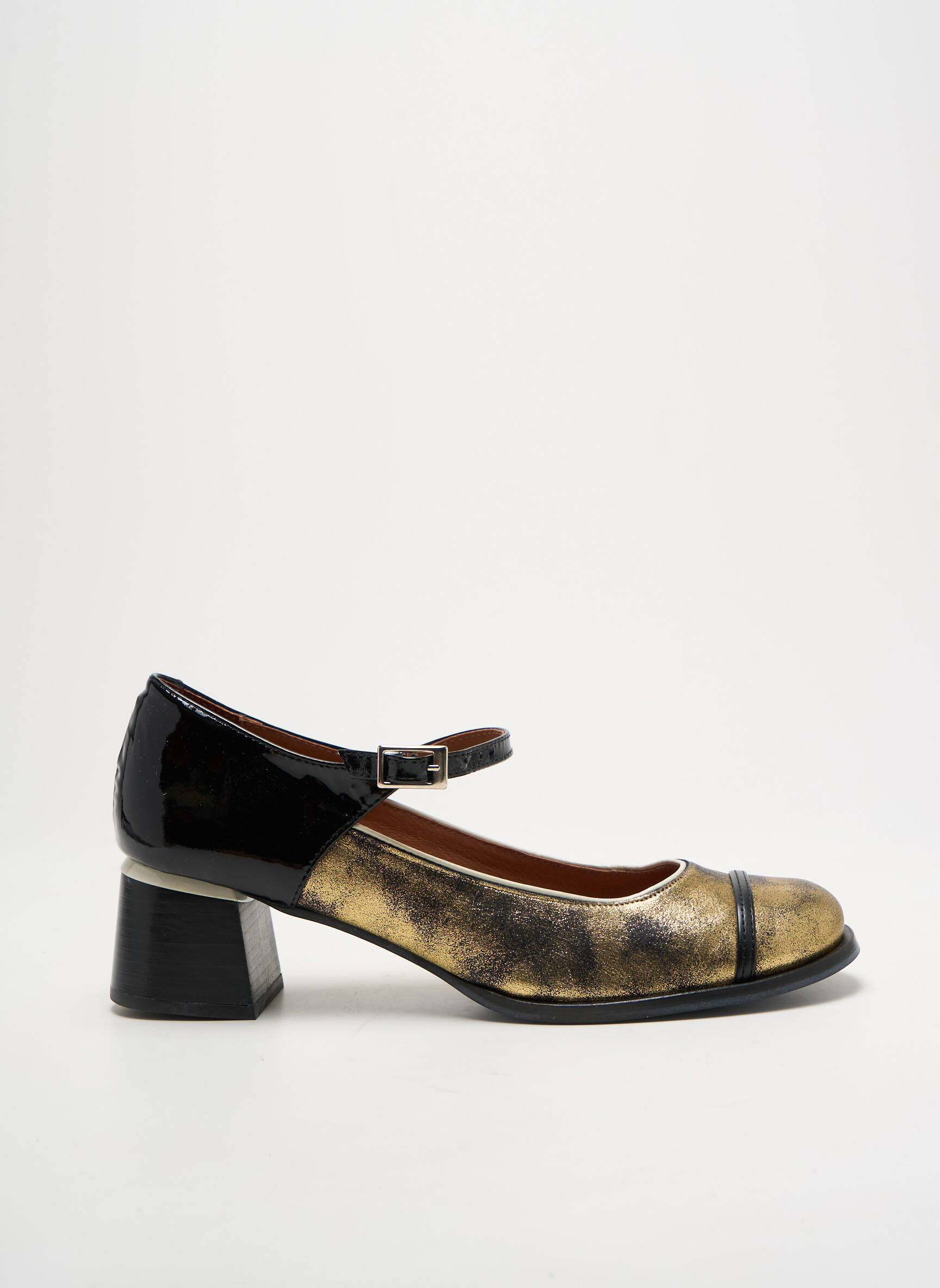 Craquez pour l’élégance originale de ces escarpins Nemonic, à prix irrésistible, parfaite solution pour allier distinction et économies tout en affirmant votre style. Leur finition bicolore, avec l’avant doré effet vieilli et le talon carré verni noir, offre une pointe rétro modernisée, tandis que la bride délicate sur le cou-de-pied assure un maintien chic et féminin.