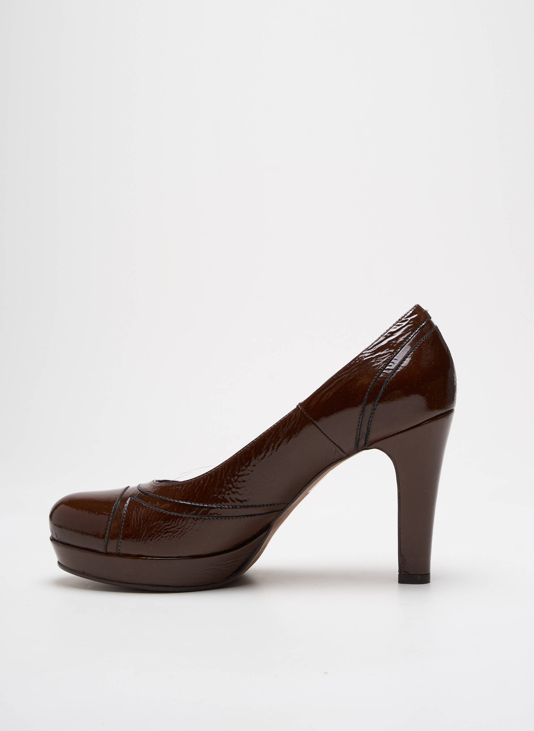 Imaginons un classique revisité avec une touche de modernité subtile : cet escarpin signé ROSEMETAL séduit par son cuir verni d’un marron profond qui capte la lumière avec élégance. Sa silhouette féminine est sublimée par un talon haut et robuste, tandis que la plateforme discrète ajoute un confort inattendu à ce modèle raffiné. Les lignes soignées, agrémentées de détails de coutures délicates, confèrent à cette chaussure une allure sophistiquée, parfaite pour accompagner aussi bien une tenue de bureau qu’une soirée habillée.