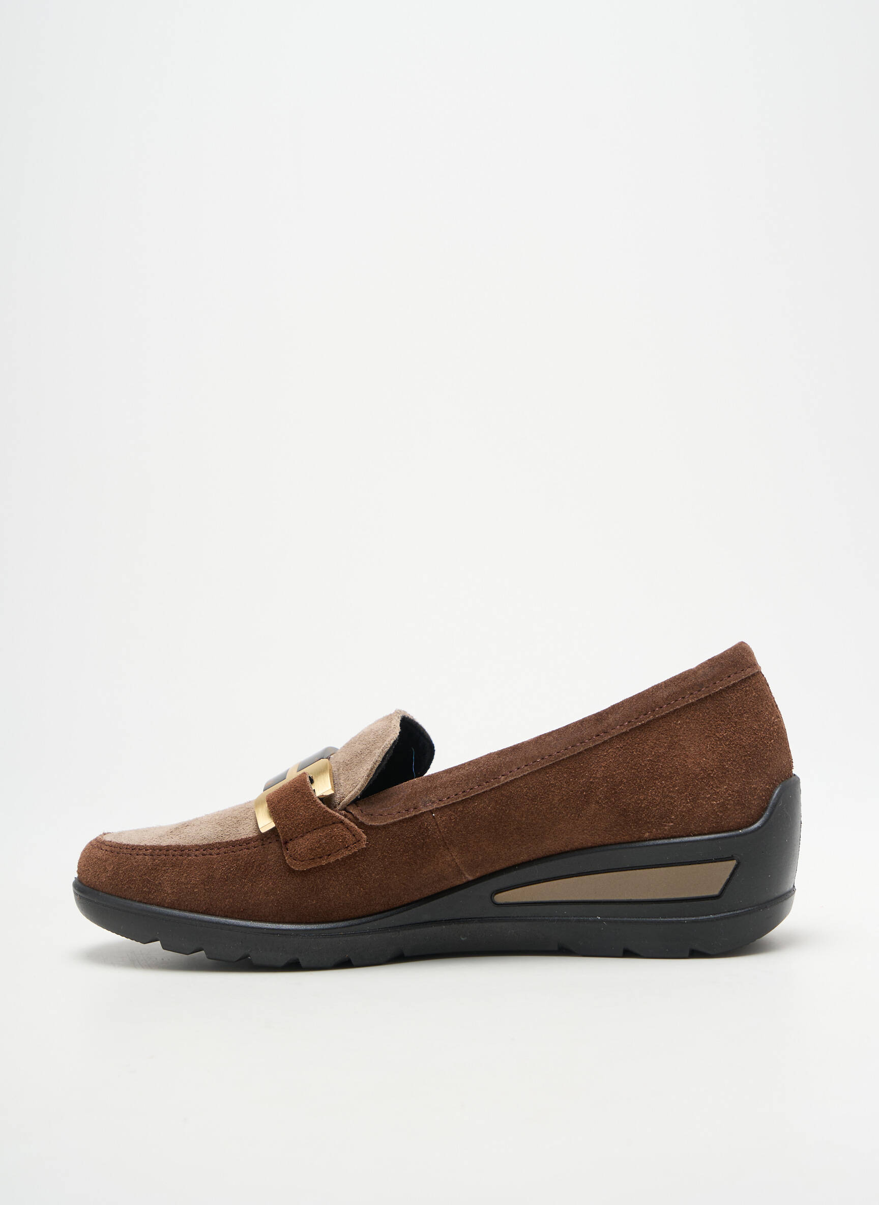 Profitez d’un bon plan en adoptant ce mocassin femme de la marque ARA, alliant élégance et confort à prix tout doux pour sublimer vos tenues du quotidien. Ce modèle bicolore dans des tons chaleureux de marron révèle un design raffiné rehaussé par une boucle métallique dorée sur l’empeigne, tandis que la semelle compensée noire offre un maintien stable et discret. Grâce à sa silhouette classique revisitée et ses détails soignés, ce mocassin est le choix idéal pour celles qui recherchent un style chic à prix mini sans compromis sur la qualité.