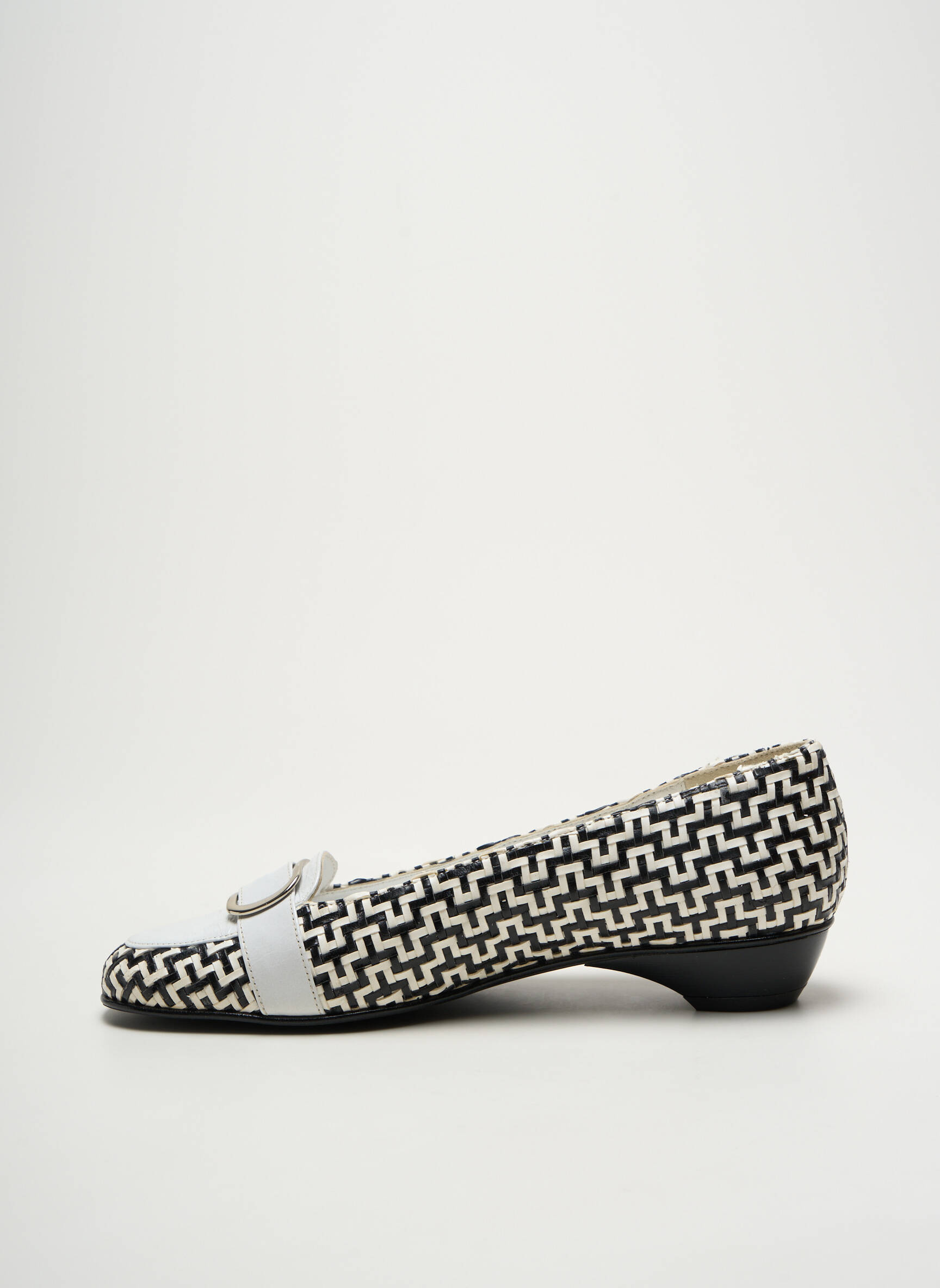 Pour un look élégant et moderne, ce mocassin s'accorde à merveille avec un pantalon cigarette noir ou une jupe droite sobre, tout en apportant une note originale à une tenue simple comme un jean brut et un chemisier uni. Il sublime aussi une robe fluide pour casser le côté trop classique, et se marie parfaitement avec des accessoires argentés ou un sac structuré pour jouer sur le contraste graphique de son motif.
