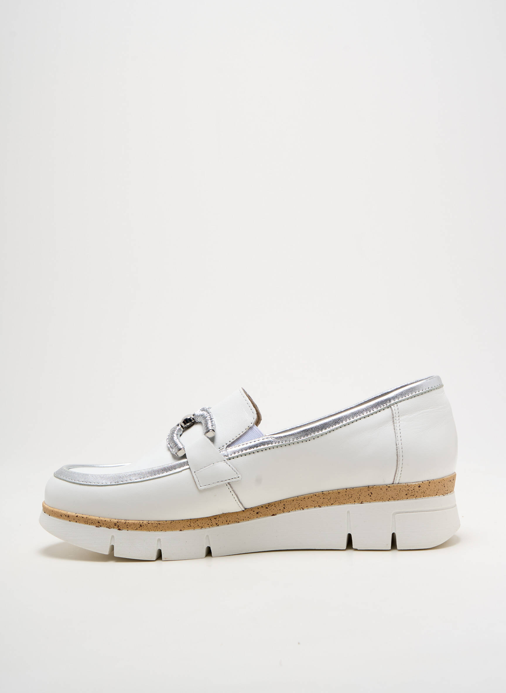 Profitez d'un réel bon plan avec ce mocassin FLUCHOS pour femme, un modèle à petit prix qui conjugue élégance et confort au quotidien grâce à sa finition blanche raffinée, ses surpiqûres discrètes et sa semelle épaisse ultra tendance, tandis qu’un détail métallique sur le dessus apporte une touche moderne sans compromis sur le style.