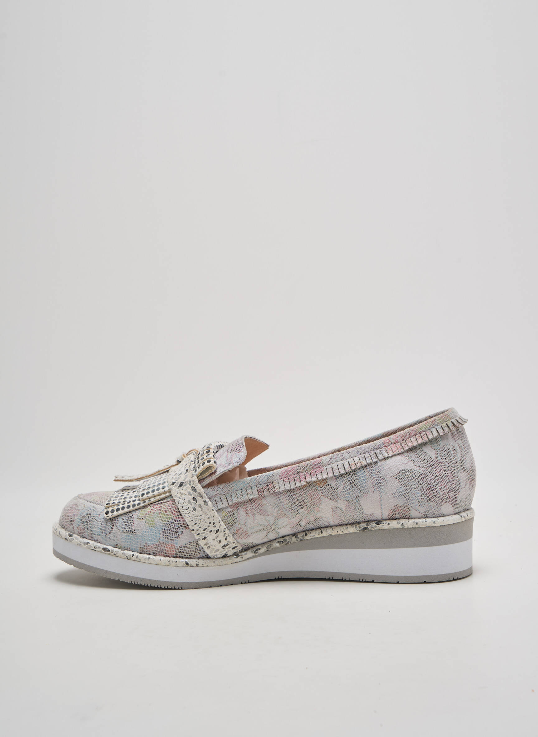 Craquez pour ce bon plan avec ce mocassin FUGITIVE BY FRANCESCO ROSSI pour femme à prix déstocké, qui vous séduira par son cuir à l’imprimé floral doux et élégant, rehaussé d’un empiècement texturé effet reptile et d’un détail métallisé raffiné sur le dessus. Son design moderne et confortable fait de ce mocassin un choix parfait pour dynamiser vos tenues de saison tout en profitant d’une belle économie sur une pièce tendance.