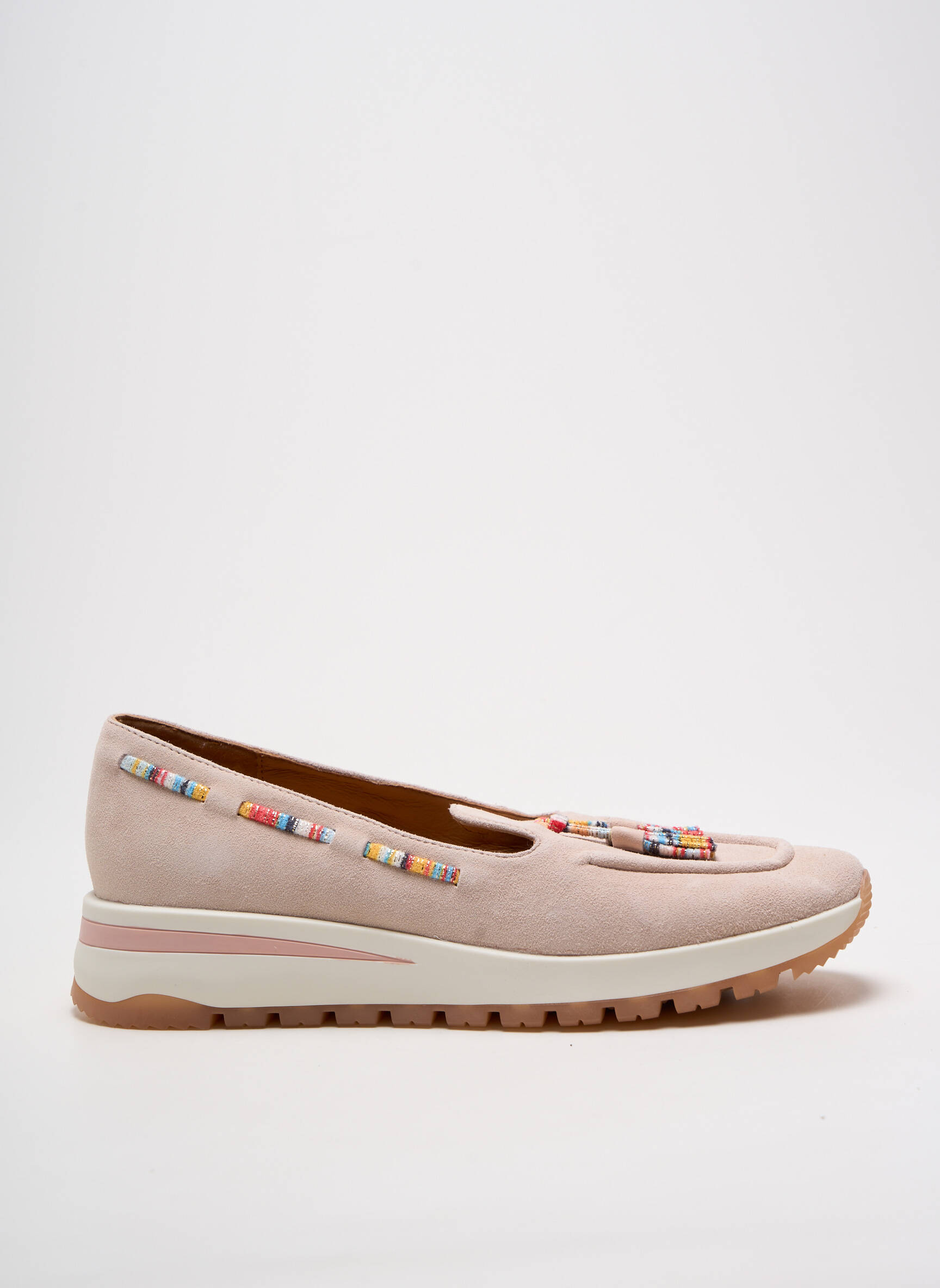 Craquez pour ce mocassin Femme FUGITIVE BY FRANCESCO ROSSI, une véritable opportunité à prix mini pour allier élégance et confort au quotidien. Son coloris nude raffiné, sublimé par des touches de perles colorées délicatement brodées sur l’empeigne et autour du col, apporte une note de fantaisie discrète à toutes vos tenues. Sa semelle épaisse légèrement crantée assure une démarche stable tout en offrant une silhouette moderne et décontractée, idéal pour vous faire plaisir sans vous ruiner.