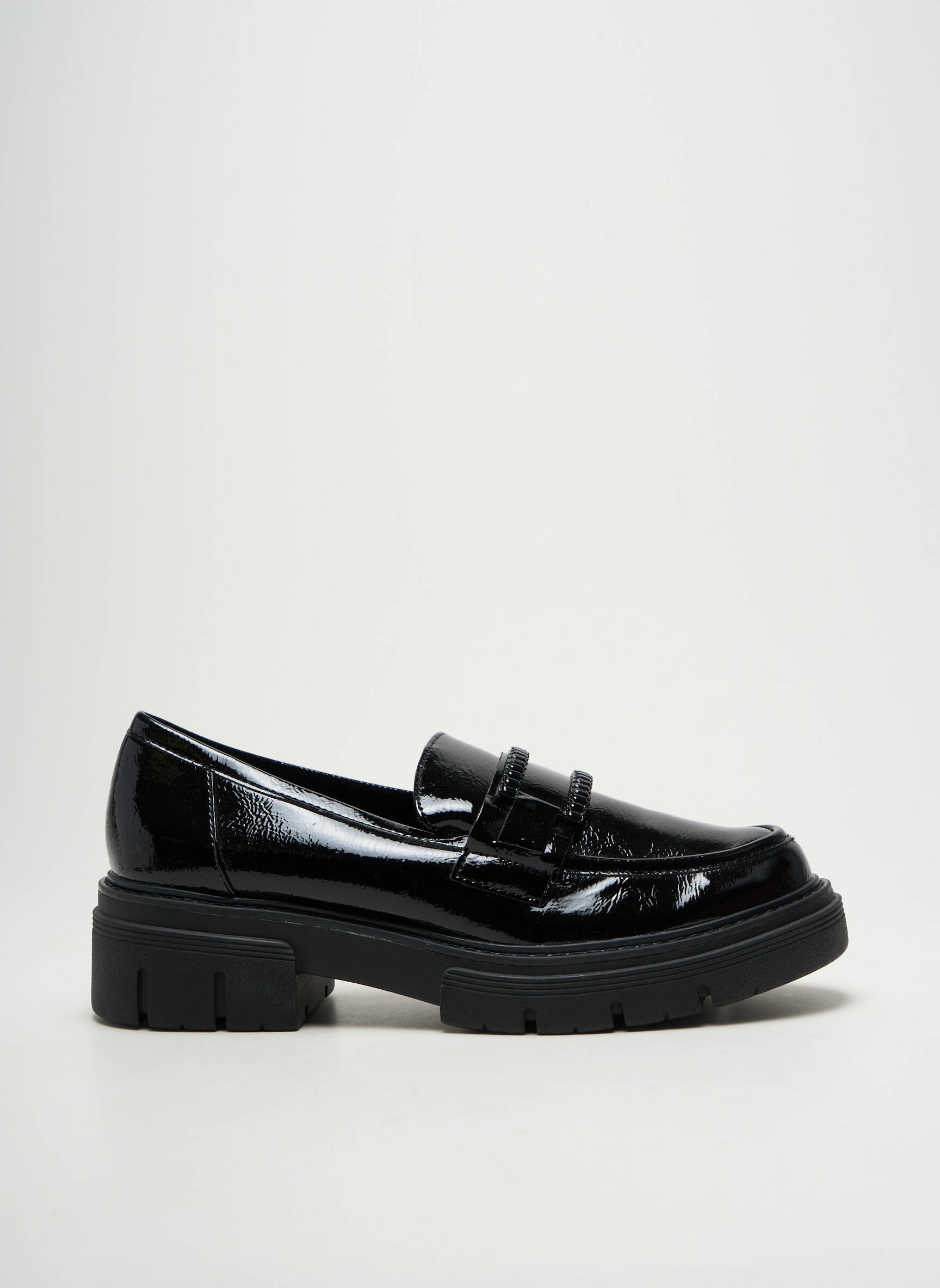Ce mocassin se porte aussi bien avec un jean retroussé pour une allure décontractée qu’avec un pantalon tailleur pour composer un look plus sophistiqué. Il s’associe facilement à un chemisier fluide ou une veste oversize pour apporter du contraste et de la modernité, et il peut également compléter une jupe courte ou une robe droite pour une touche citadine et féminine. Ajoutez un sac structuré ou une ceinture originale pour finaliser votre tenue tout en restant tendance et à petit prix.