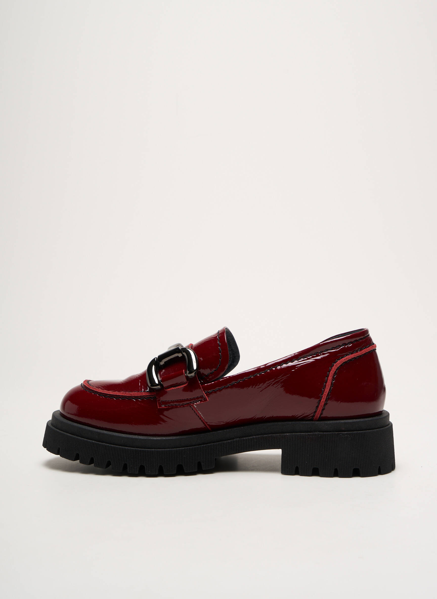 Plongez dans un univers où le confort rencontre l'audace avec les mocassins de la marque MYMA. Arborez une teinte bordeaux éclatante qui attire tous les regards, tandis que la finition laquée ajoute une touche de sophistication à votre collection. Le détail de la boucle sur le dessus offre une élégance moderne, contrastant avec la semelle crantée qui vous assure une marche stable et dynamique. Ce mélange unique de styles apporte une atmosphère à la fois chic et décontractée, parfaite pour affronter la journée avec assurance. Ces mocassins sont l'accessoire idéal pour rehausser n'importe quelle tenue.