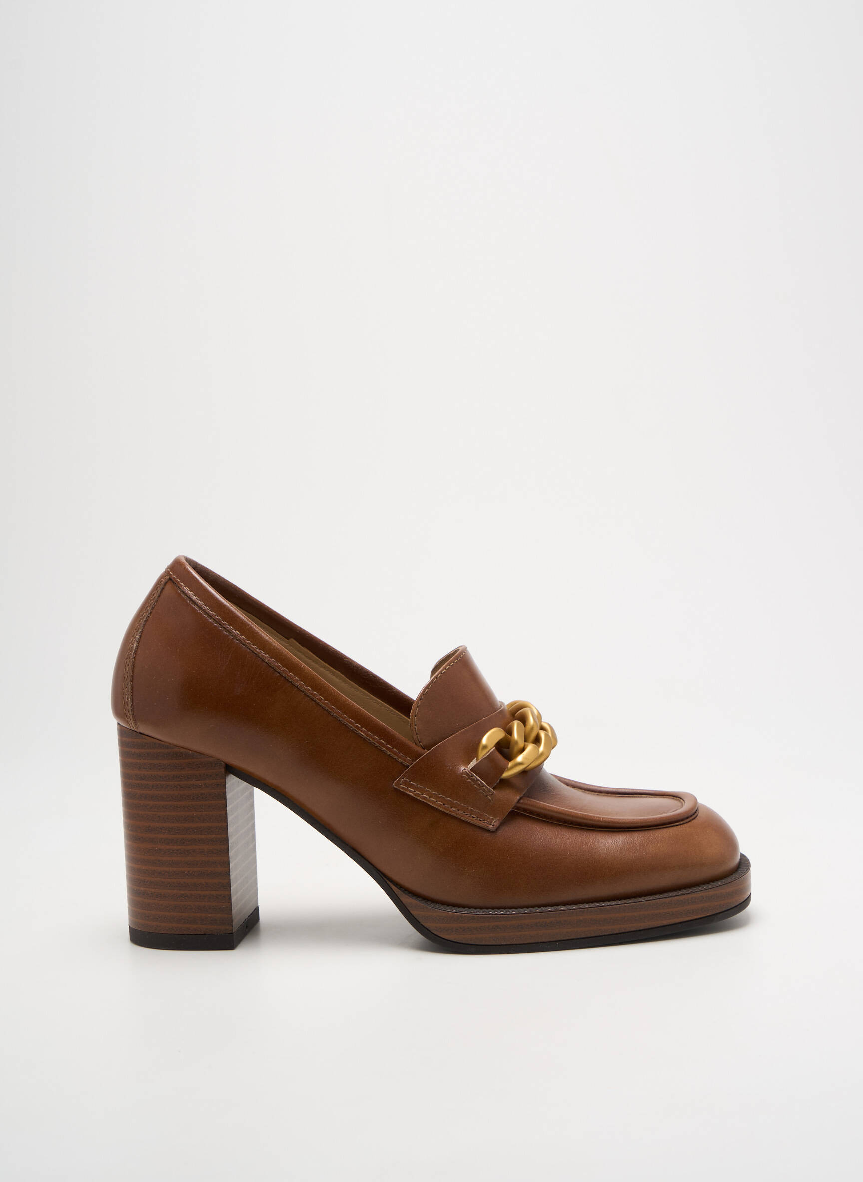Profitez d'un bon plan mode avec ce mocassin pour femme signé NERO GIARDINI, qui rehausse votre style sans faire exploser votre budget. Ce modèle allie élégance et modernité grâce à son cuir lisse marron, sa forme structurée et son talon bloc parfaitement stable, tandis que la chaîne dorée apporte une note sophistiquée à l’ensemble. Offrez-vous le raffinement à prix mini tout en misant sur un classique incontournable à porter en toutes occasions.