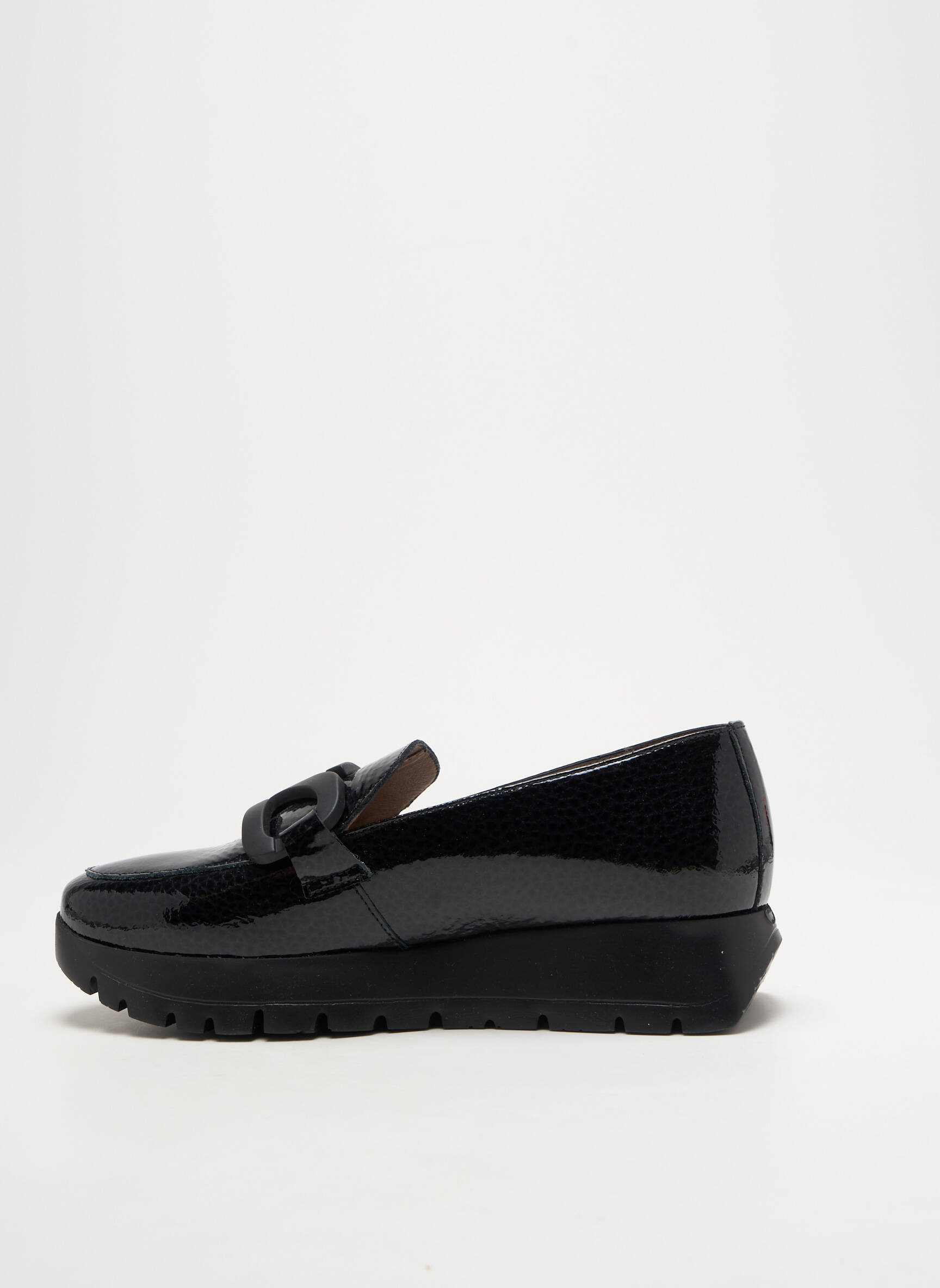 Saisissez l'opportunité de shopper un mocassin tendance à prix mini avec ce modèle signé WONDERS, une chaussure pour femme qui allie élégance et modernité grâce à son cuir verni noir ultra-brillant et son détail de boucle ton sur ton. Sa semelle épaisse promet confort et maintien tout au long de la journée, en faisant un indispensable pour compléter vos looks citadins sans vous ruiner.