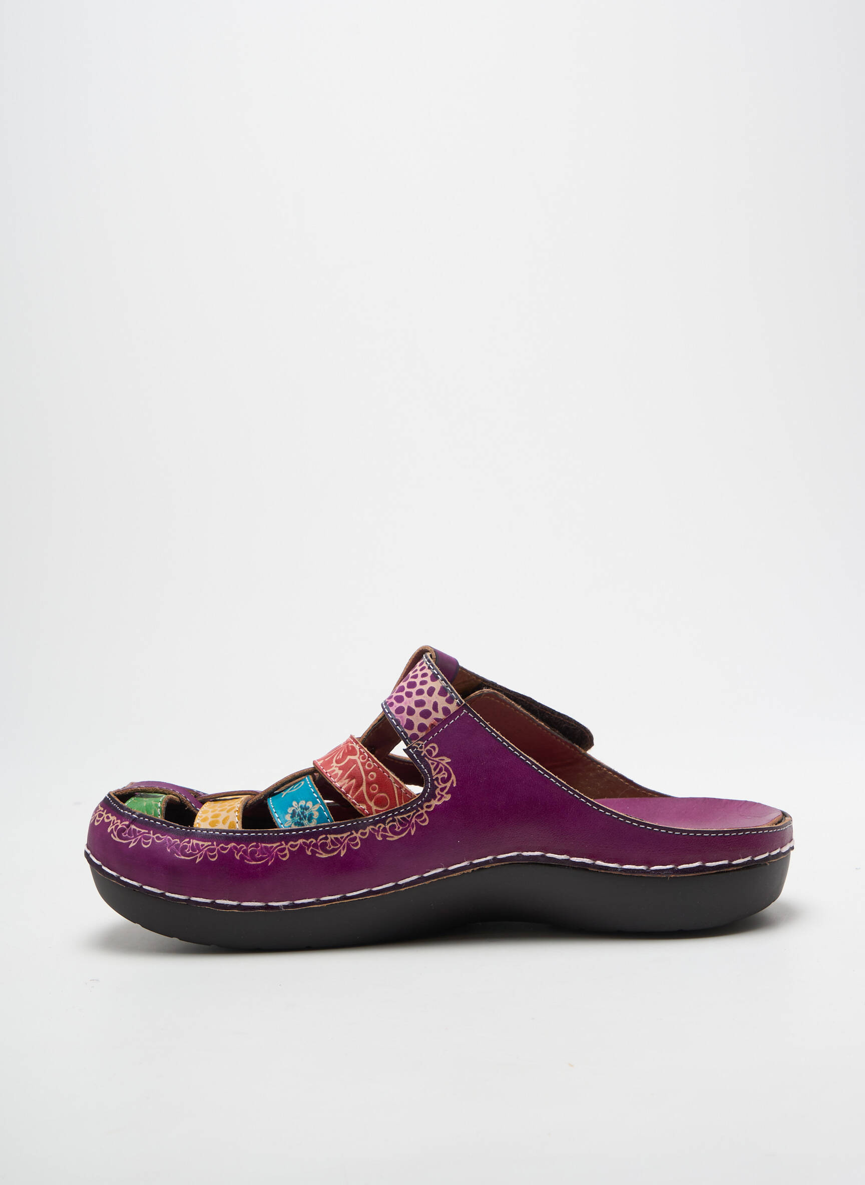 Profitez d’un véritable bon plan pour donner du peps à votre été avec ces mules LAURA VITA pour femme, un modèle coloré qui cumule style original et confort à petit prix grâce à son design multicolore audacieux, ses motifs subtils et sa semelle anatomique idéale pour vos journées ensoleillées sans compromis sur le look ni sur votre budget.