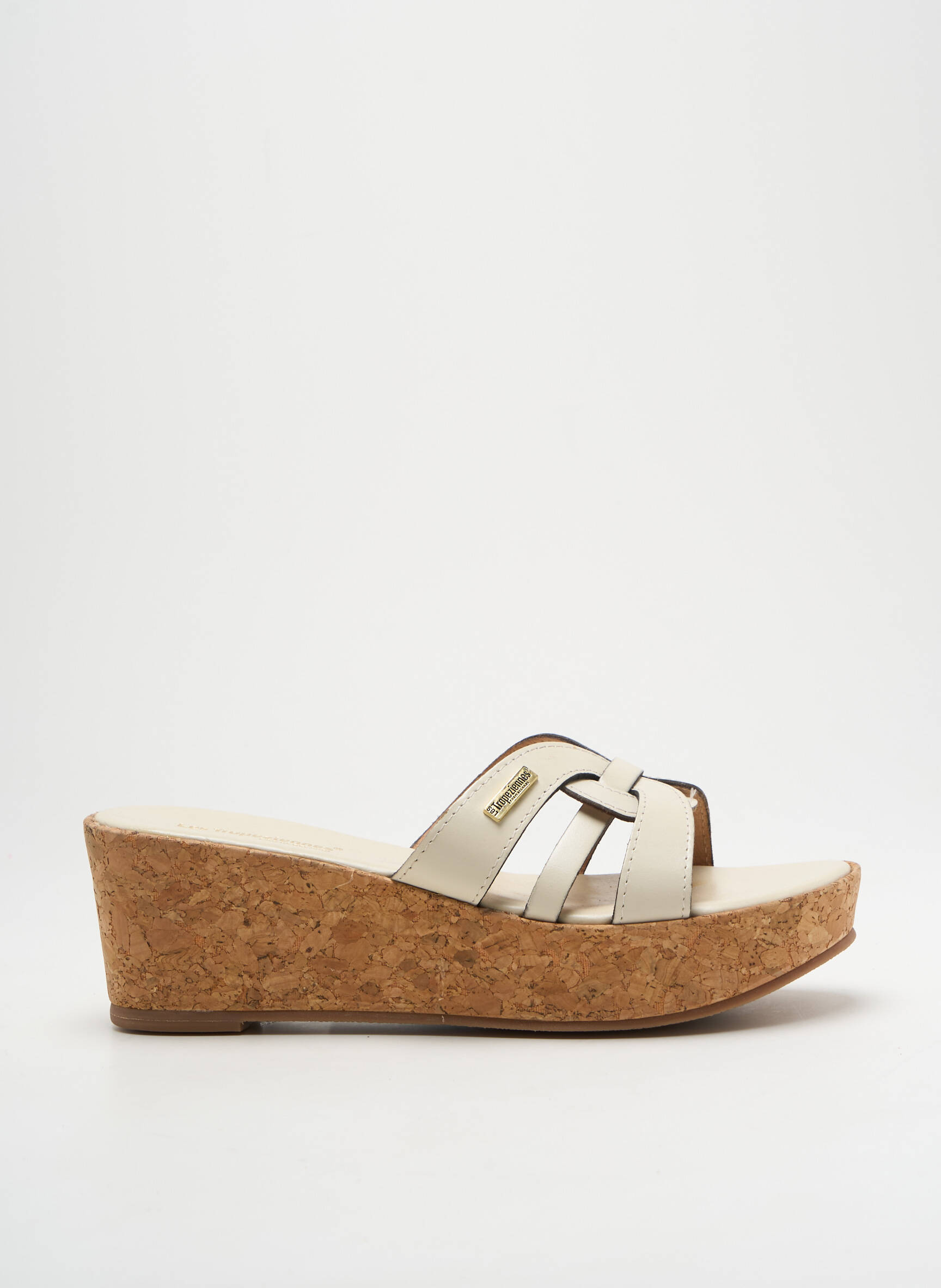 Craquez pour ces mules LES TROPEZIENNES PAR M.BELARBI à prix mini, parfaites pour donner du style à votre été tout en faisant des économies. Leur dessus en lanières croisées couleur claire apporte une touche de raffinement, tandis que la semelle compensée imitation liège offre confort et allure moderne. C’est le bon plan idéal pour accessoiriser toutes vos tenues estivales sans se ruiner.