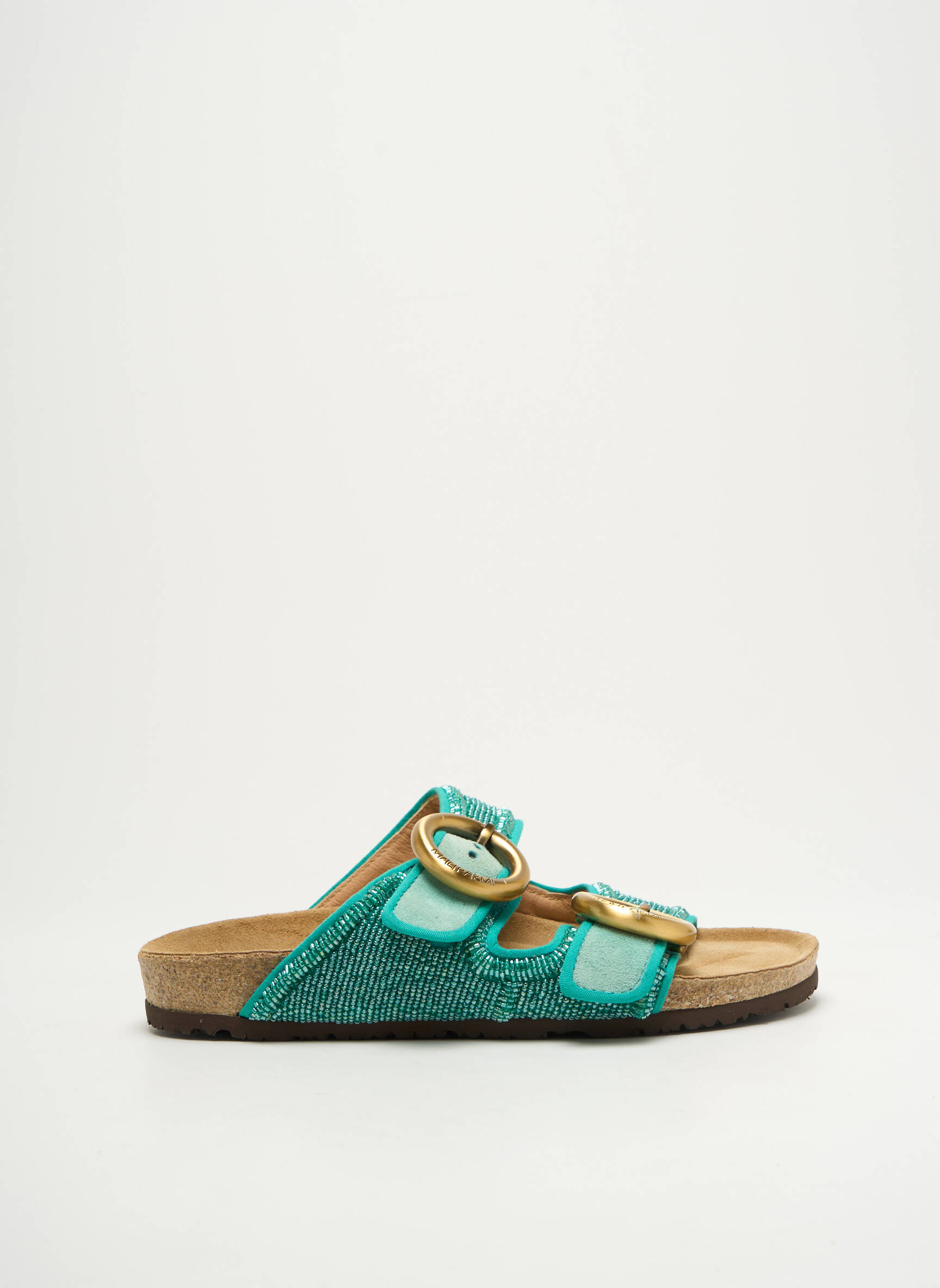 Craquez pour ces mules signées MALIPARMI, un vrai bon plan pour apporter une touche d’originalité et de confort à votre été, avec leur belle finition turquoise rehaussée par de larges brides ajustables et une boucle dorée, tout en profitant d’un prix mini qui vous permet de vous faire plaisir sans compromis.