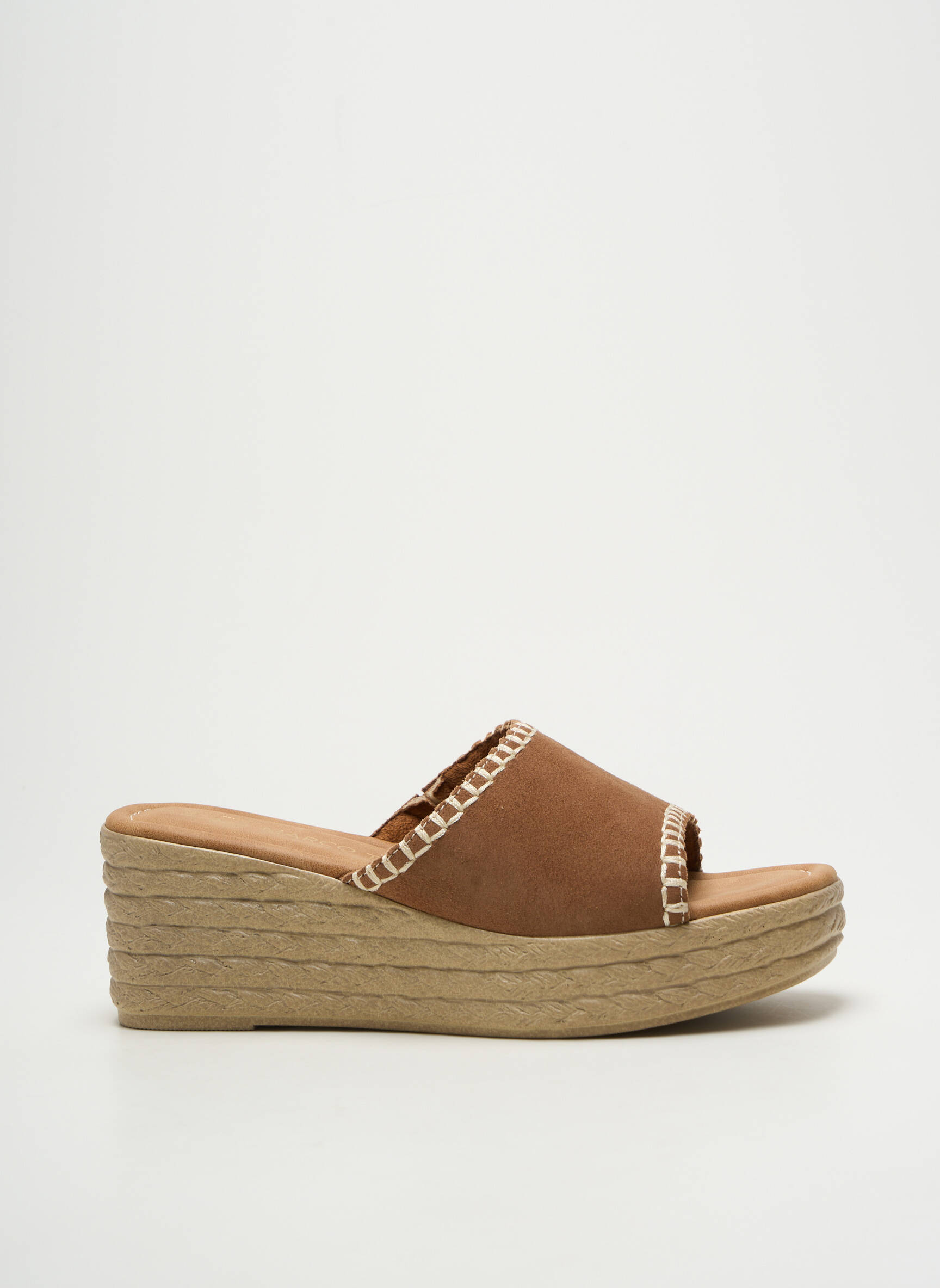 Profitez d'un vrai bon plan avec ces mules pour femme signées MARCO TOZZI, idéales pour allier style et petit prix. Leur dessus effet daim brun est subtilement orné de surpiqûres contrastées, tandis que la semelle compensée à l’aspect corde apporte la touche estivale parfaite et un confort décontracté au quotidien. Ces sabots sont une occasion à saisir pour compléter votre garde-robe sans vous ruiner.