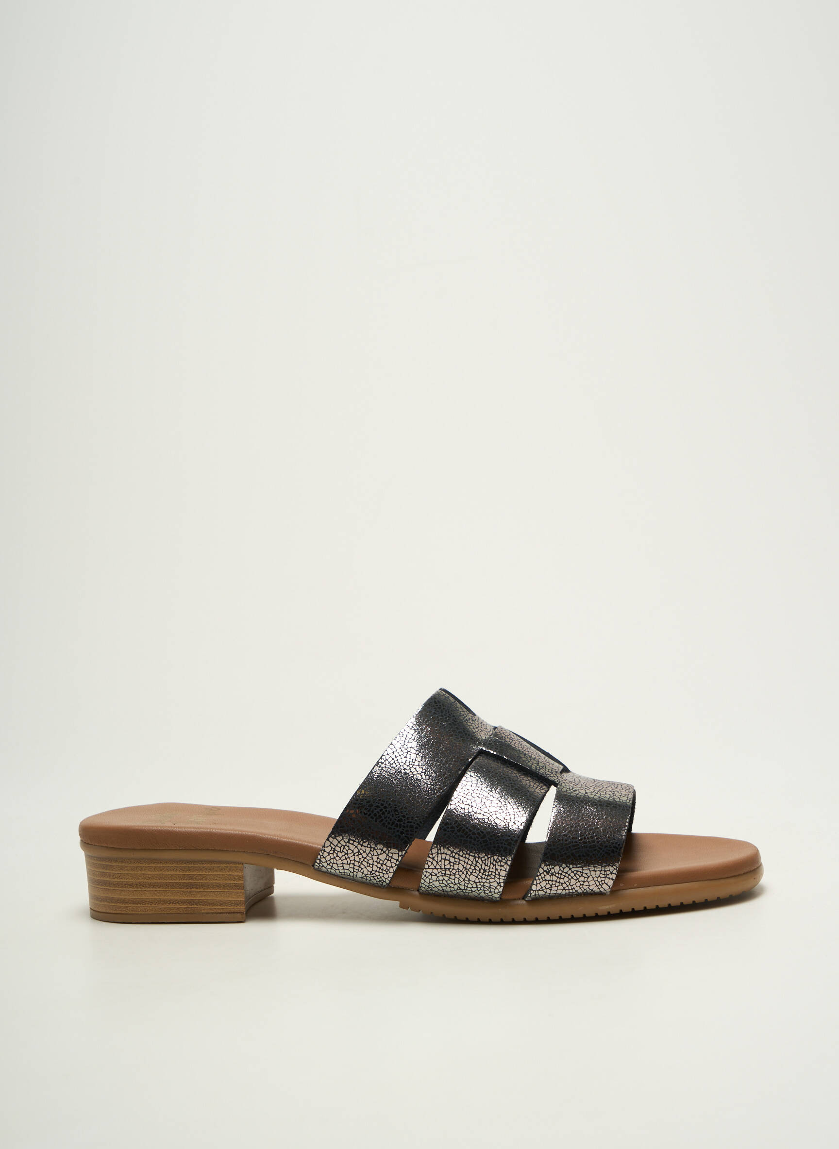 Craquez pour ces mules STUDIO SCARPE pour femme qui allient style moderne et praticité à un prix irrésistible, idéales pour toutes celles qui veulent profiter d’une véritable bonne affaire sans renoncer à l’élégance. Leur design graphique composé de larges brides métallisées argentées apporte une touche chic et tendance, tandis que le petit talon carré assure confort et stabilité tout au long de la journée. Offrez-vous la qualité boutique à prix malin et sublimez vos tenues estivales avec cette paire facile à porter aussi bien en journée qu’en soirée.
