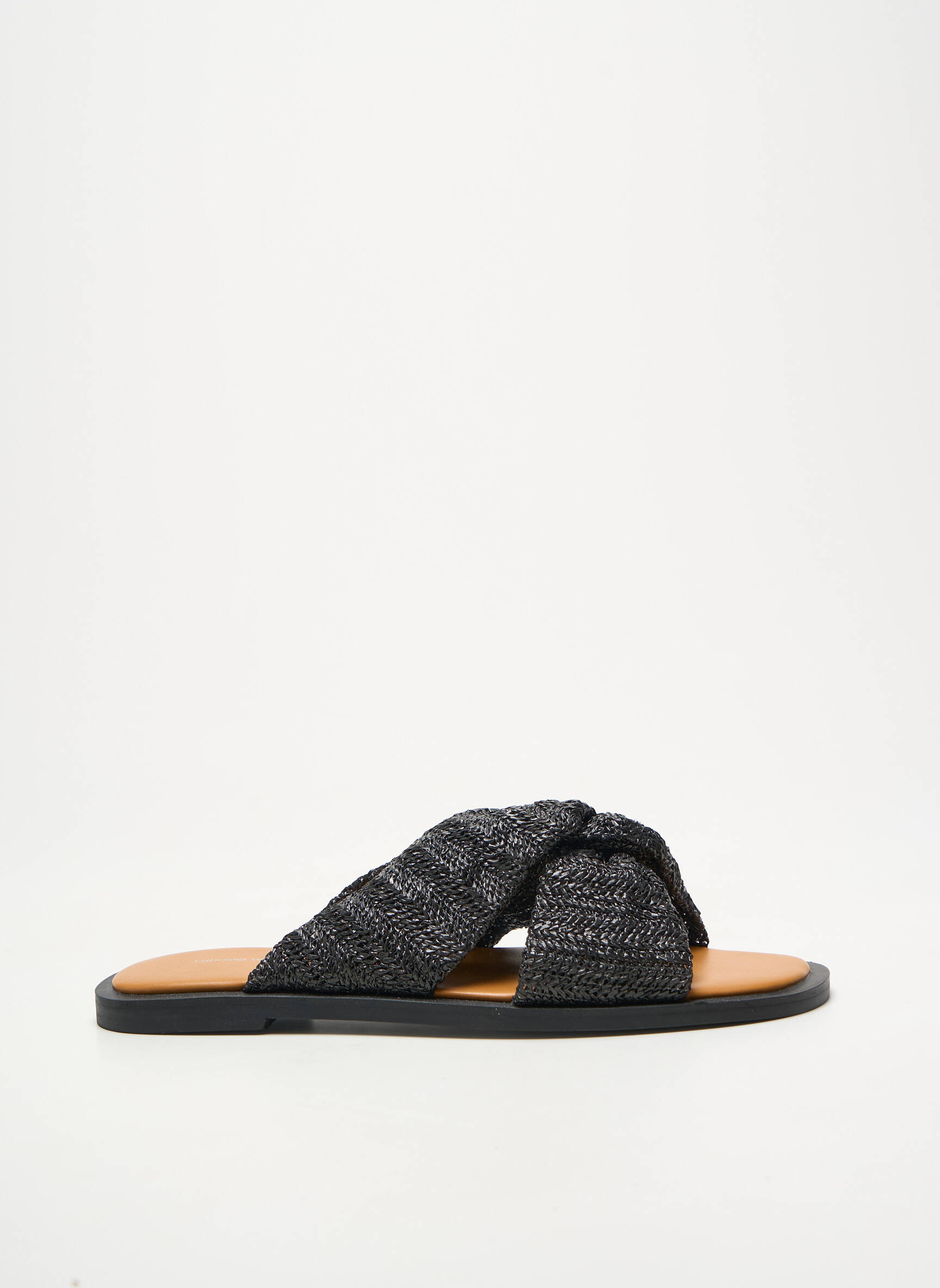 Craquez pour ces mules Vanessa Wu à petit prix, idéales pour ajouter une touche tendance à votre look tout en faisant de vraies économies, avec leur design moderne composé de larges brides tressées noires et leur semelle plate qui assure un confort parfait pour la belle saison.