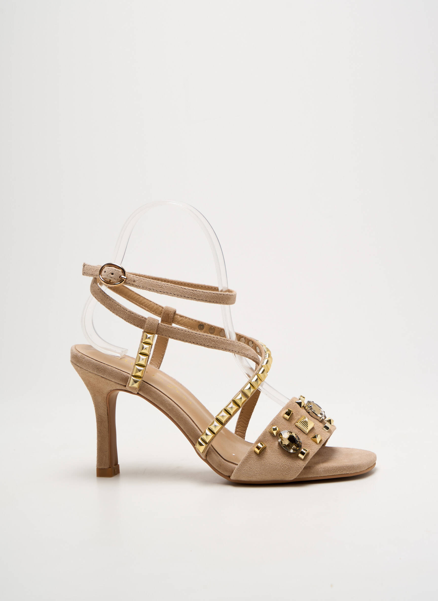 Craquez pour ces sandales Alma en Pena à prix mini et donnez une touche sophistiquée à vos looks sans vous ruiner. Leur design raffiné en coloris nude met en valeur une bride ornée de clous dorés et de pierres fantaisie, tandis que le talon haut élance la silhouette avec élégance. Parfaites pour sublimer vos tenues d'été ou vos occasions spéciales, elles vous permettent de profiter d’un style chic et tendance à prix déstockage.