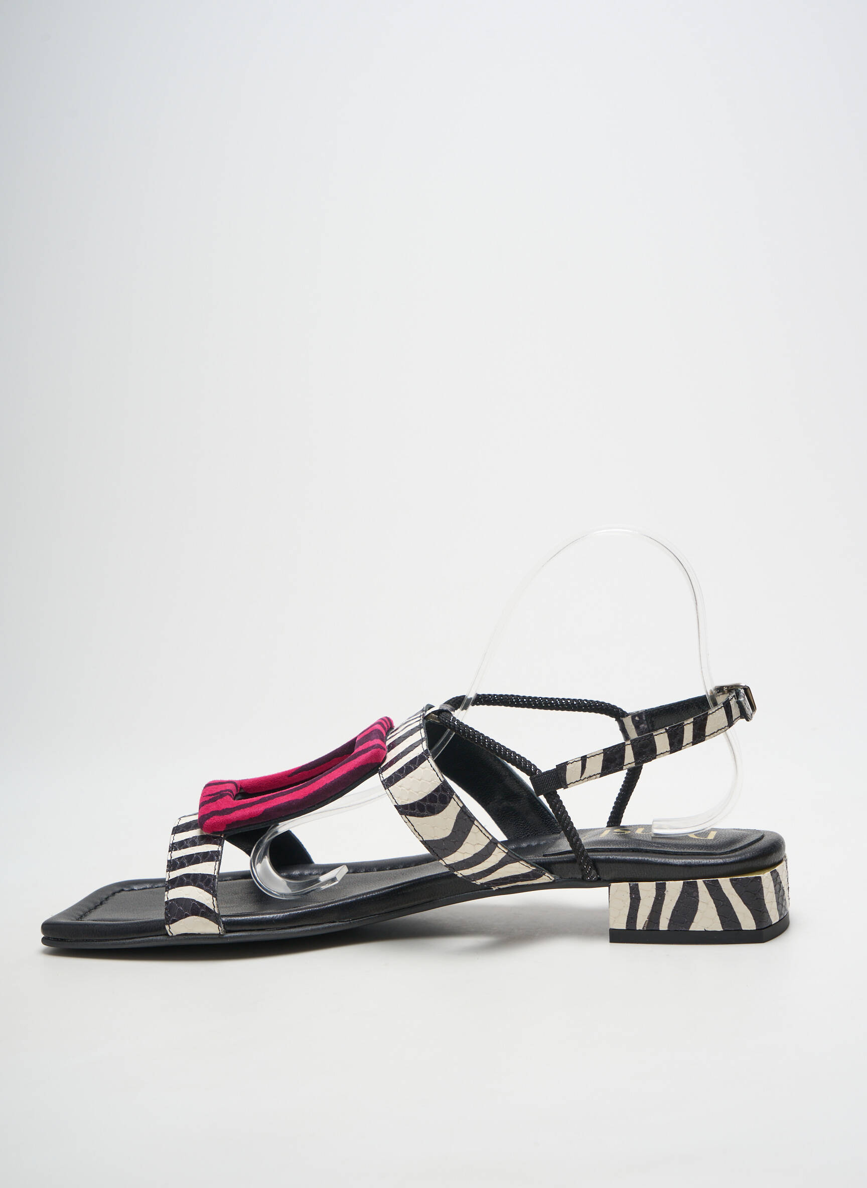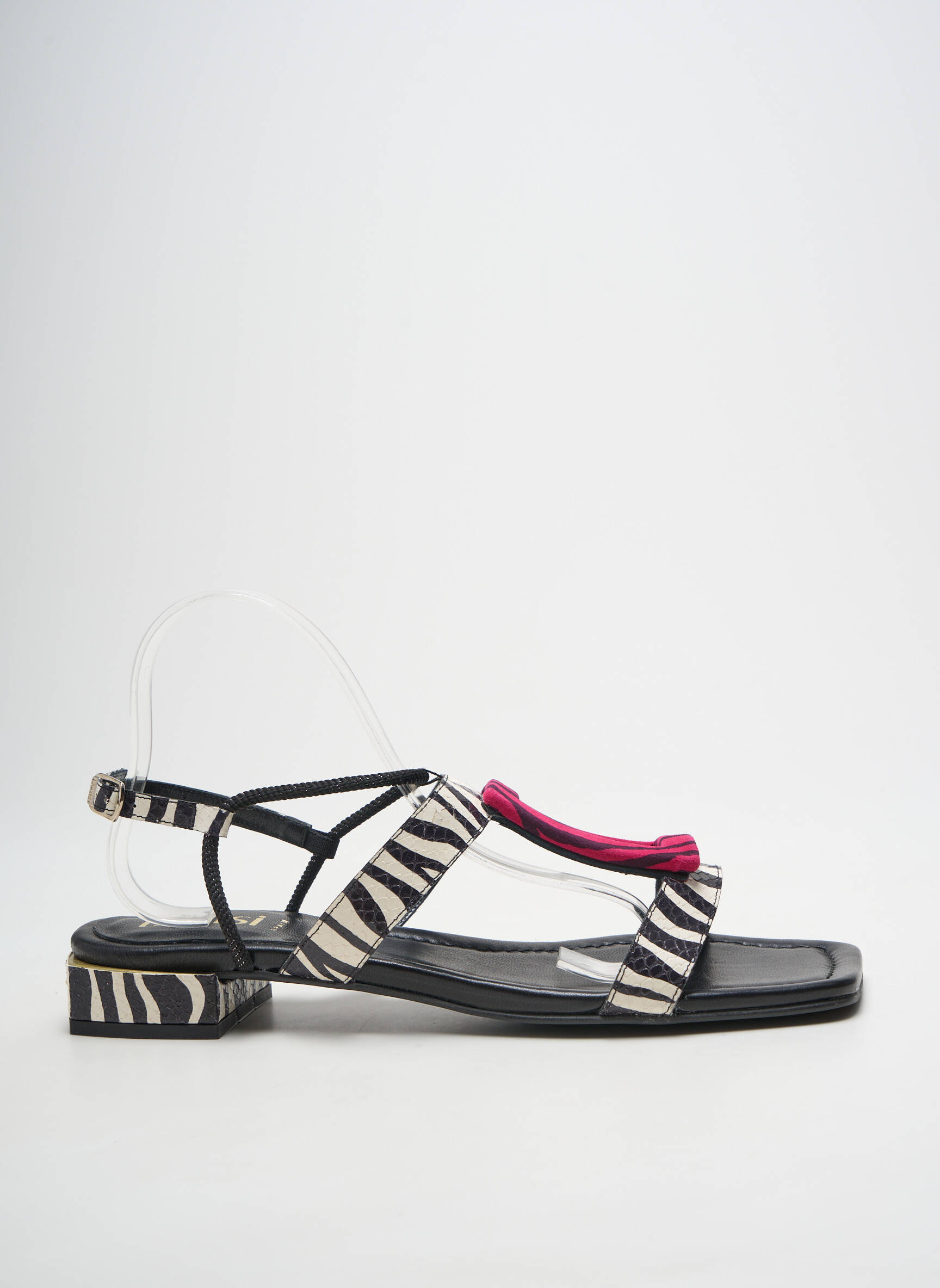 Saisissez l’opportunité de vous offrir une paire de sandales DANSI à prix mini avec ce modèle unique, qui mise sur un imprimé zébré chic rehaussé d’une touche de rose fuchsia sur le dessus. La finesse de ses brides croisées et son petit talon habillé apportent une vraie élégance moderne, tout en assurant un confort parfait pour la belle saison. C’est le bon plan idéal pour upgrader votre look sans vous ruiner !