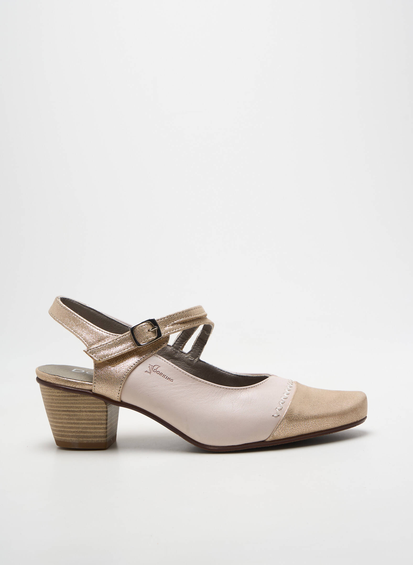 Profitez d’une superbe opportunité avec ces sandales DORKING pour femme, idéales pour rehausser votre style sans vous ruiner. Ce modèle élégant se distingue par un cuir bicolore doux associant un beige champagne métallisé à une touche rose poudré, parfait pour la saison. La silhouette féminine est sublimée par une bride à boucle sur le côté, qui maintient bien le pied tout en finesse, tandis que le talon moyen ajoute une stabilité confortable au quotidien. C’est le choix parfait pour allier chic et économies lors de vos prochaines sorties ou au bureau.