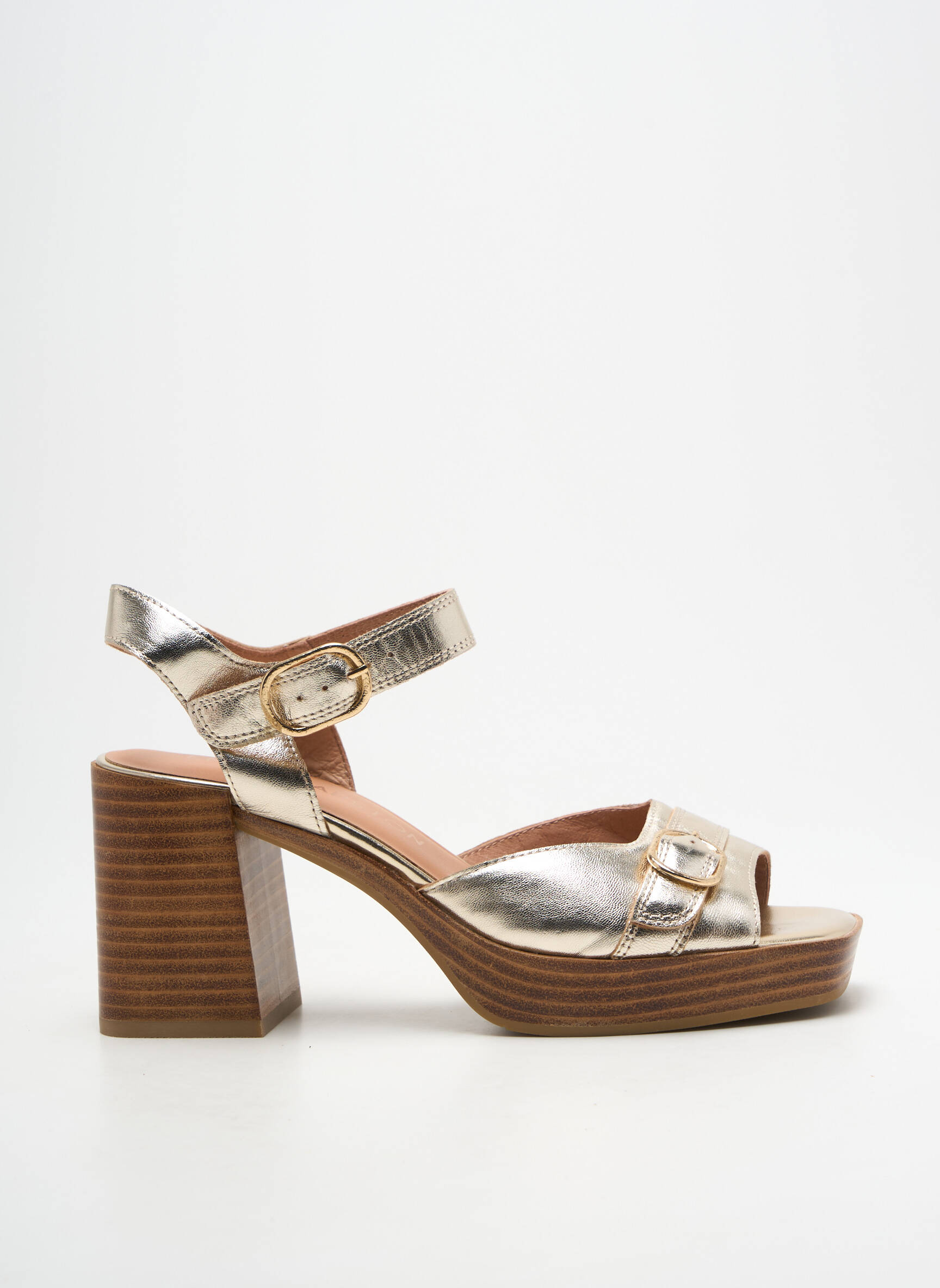 Profitez d’un vrai bon plan avec cette sandale EMILIE KARSTON pour femme, un modèle élégant au look métallique doré qui ajoute une touche chic à toutes vos tenues tout en restant accessible. Son talon épais en bois empilé et sa plateforme offrent une stabilité idéale pour marcher avec confort toute la journée, tandis que la bride à boucle dorée assure un maintien personnalisé. C’est la paire parfaite pour celles qui veulent allier style, qualité et prix malin.