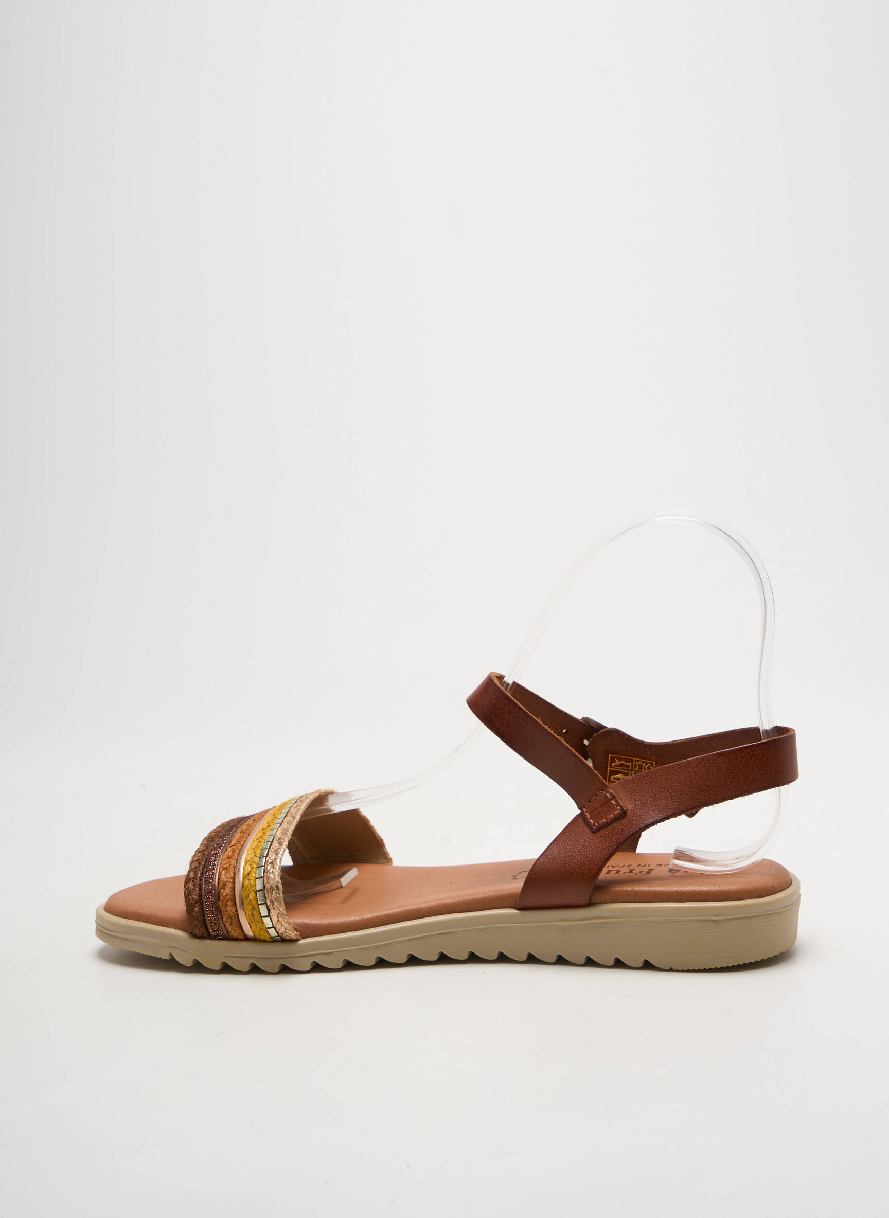 Craquez pour ces sandales EVA FRUTOS pour femme, parfaites pour profiter des beaux jours sans se ruiner. Leur design allie élégance et modernité avec un mélange de brides marron et dorées, idéal pour sublimer toutes vos tenues estivales à petit prix. Ce modèle mise sur un confort optimal grâce à sa semelle souple et antidérapante, le tout proposé à un tarif avantageux pour celles qui aiment se faire plaisir à prix malin.