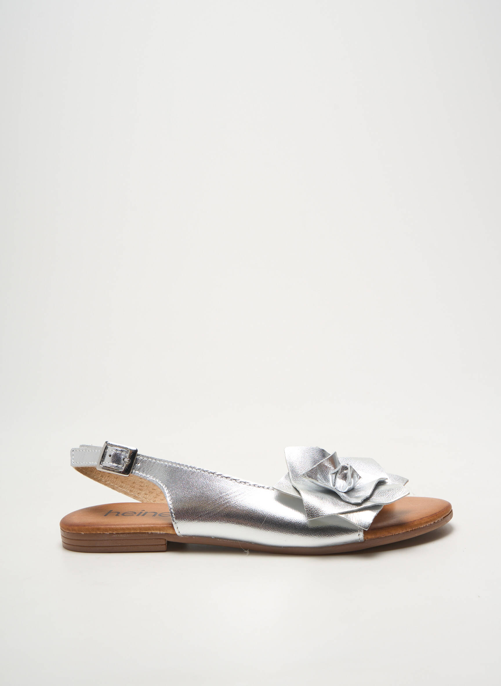 Profitez d’un vrai bon plan avec ces sandales HEINE pour femme, idéales pour allier élégance et petit prix. Avec leur finition argentée lumineuse et leur charmante fleur en relief sur le dessus, elles apportent une touche chic à toutes vos tenues estivales, tout en restant légères et faciles à porter grâce à leur bride à la cheville. Une occasion à saisir pour se faire plaisir sans se ruiner !