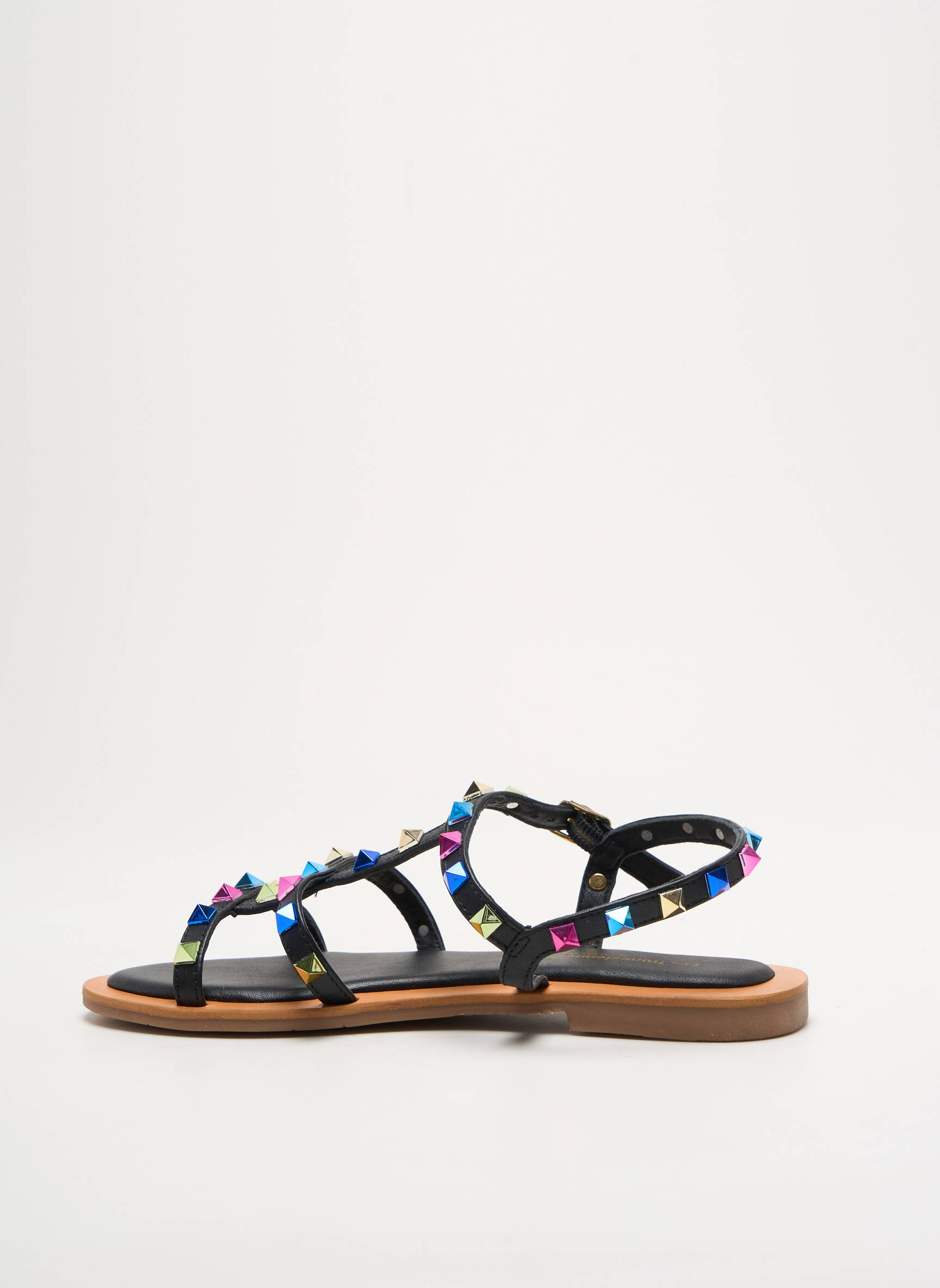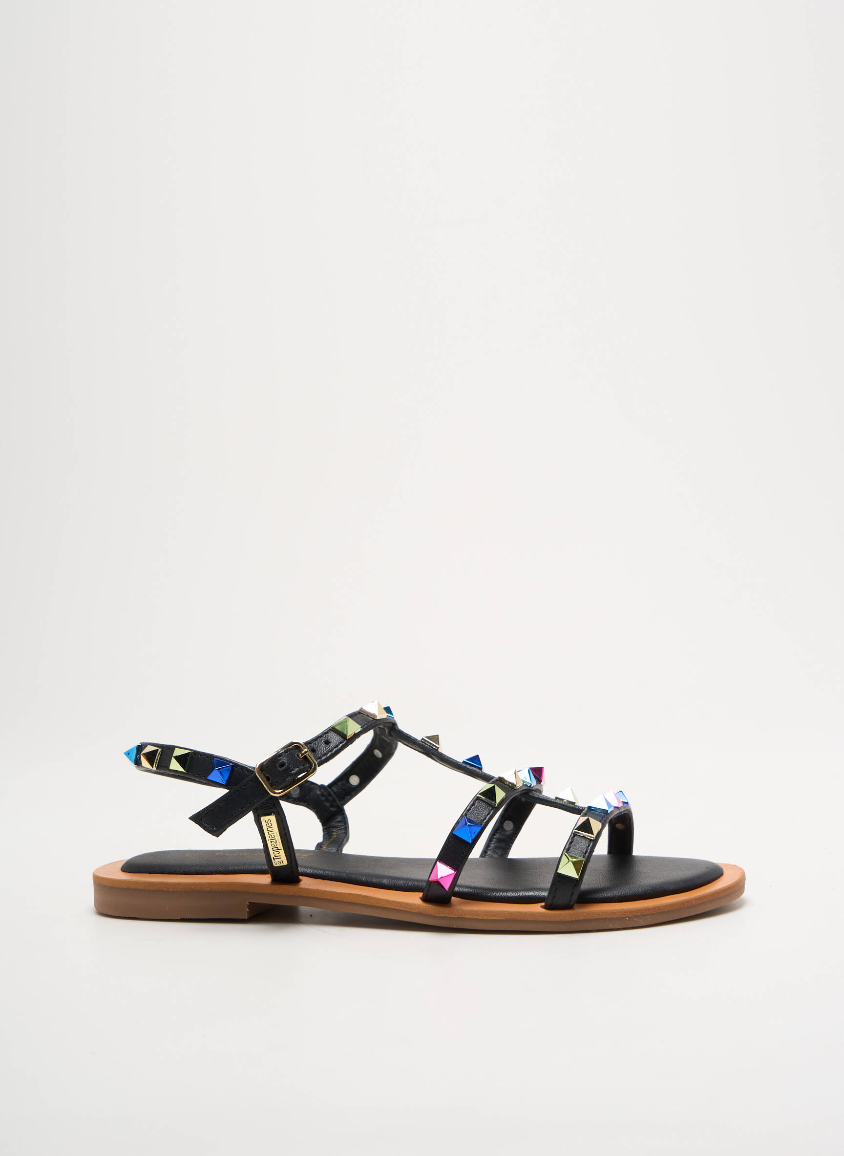 Craquez pour ces sandales LES TROPEZIENNES PAR M.BELARBI, parfaites pour les fashionistas à la recherche d’un bon plan avec style. Ce modèle se distingue par ses brides noires ornées de clous irisés qui apportent une touche tendance et moderne, tout en restant facile à assortir avec vos tenues estivales. Sa semelle fine et plate assure un confort au quotidien, idéal pour flâner en ville ou profiter des belles journées d’été, le tout à prix mini pour se faire plaisir sans se ruiner.