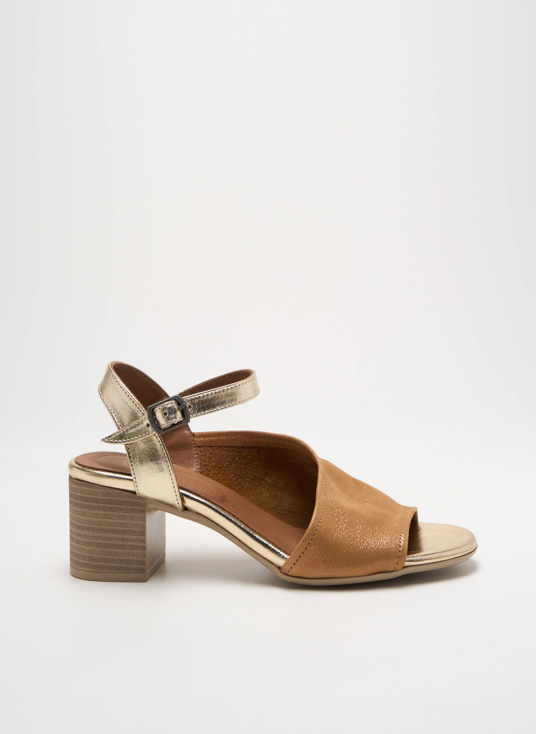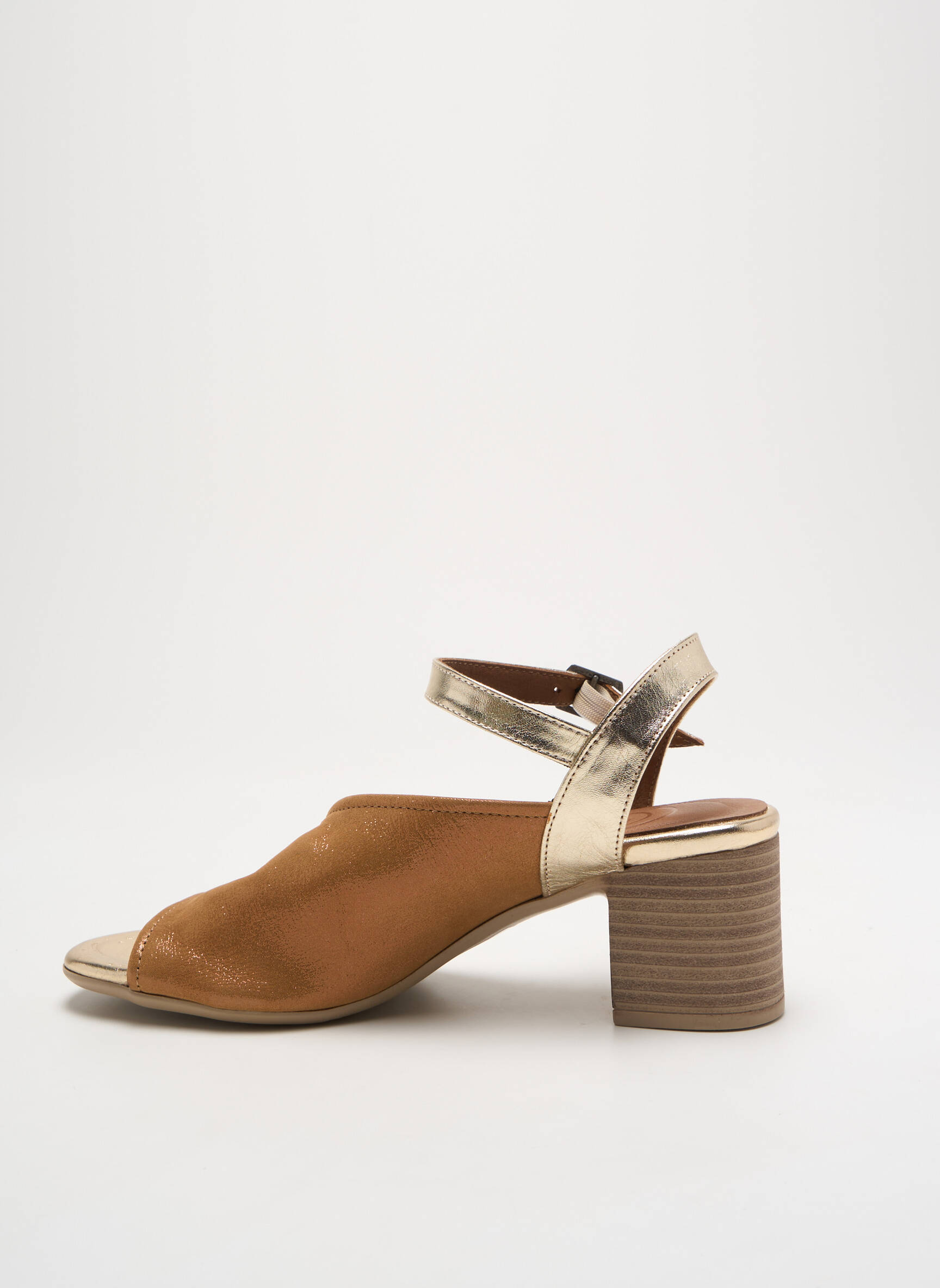 Saisissez l'occasion de vous offrir une paire de sandales LUNE & L'AUTRE à prix mini, idéale pour les adeptes de looks féminins sans compromis sur le confort. Ce modèle nu-pieds, alliant un joli contraste entre une bride dorée brillante et un empeigne camel à la texture raffinée, repose sur un talon épais qui assure une démarche stable et élégante tout au long de la journée. À ce tarif avantageux, laissez-vous séduire par son style chic et actuel qui s’accorde à toutes vos envies estivales.