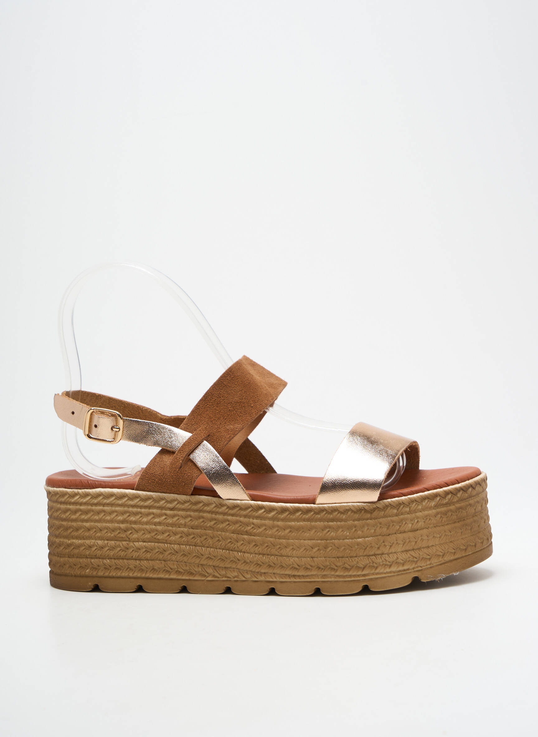 Craquez pour ces sandales MES JOLIS NU PIEDS pour femme, l’allié parfait de votre été à prix mini avec leur look tendance et leur confort incomparable. Leur semelle épaisse façon corde revisite l’esprit espadrille tout en offrant une allure moderne, tandis que leur jeu de brides mêlant suédine marron et effet métallisé doré illumine vos tenues en un clin d’œil. Cette paire combine parfaitement style et petit budget pour un coup de cœur accessible à toutes.