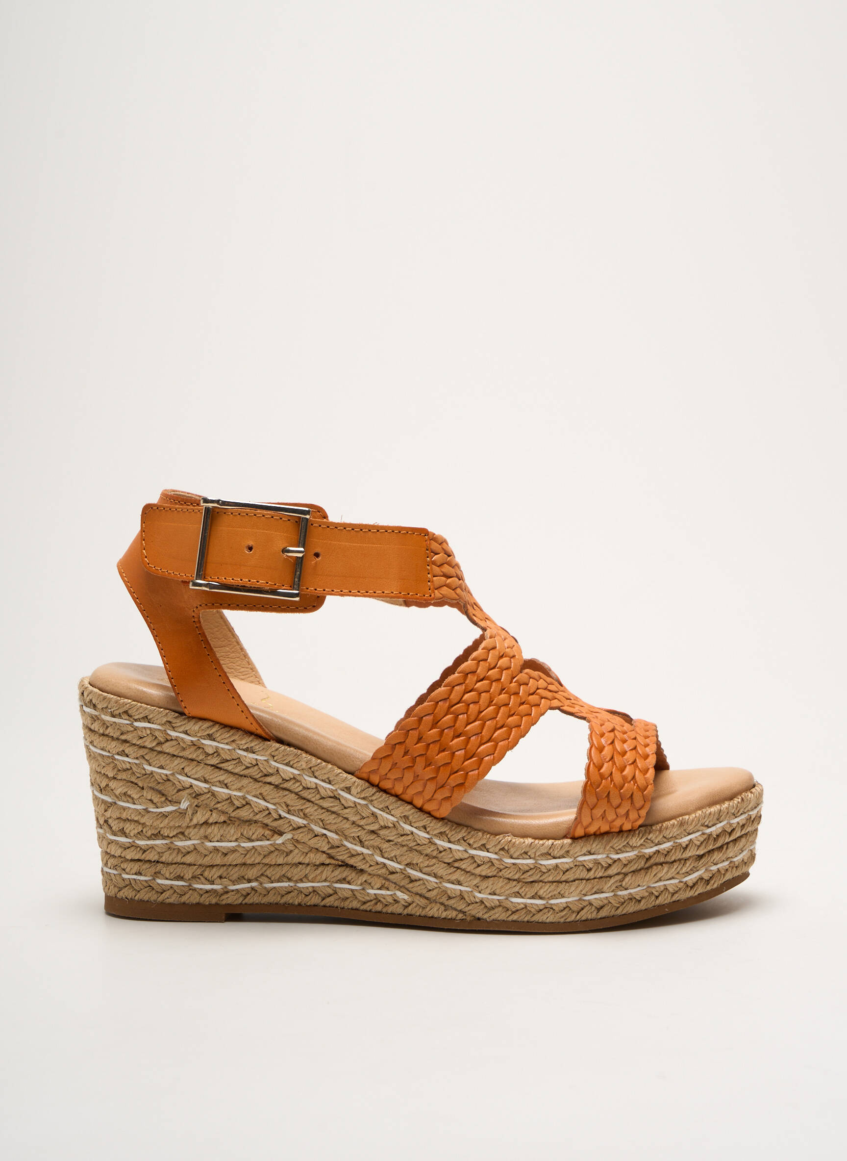 Osez faire un pas vers l'été avec ces sandales à talons compensés signées METAMORF'OSE, qui apportent une touche de fraîcheur à votre garde-robe. Leur nuance d'orange éclatant ajoute une note vive et joyeuse, tandis que les lanières en tressé créent un effet texturé et raffiné. La silhouette élégante, ornée d'une boucle discrète, garantit à la fois maintien et confort pour sublimer vos tenues estivales. Avec leur semelle en jute, ces nu-pieds évoquent le charme décontracté des vacances, parfaits pour flâner sur les plages ou pour des soirées en terrasse.