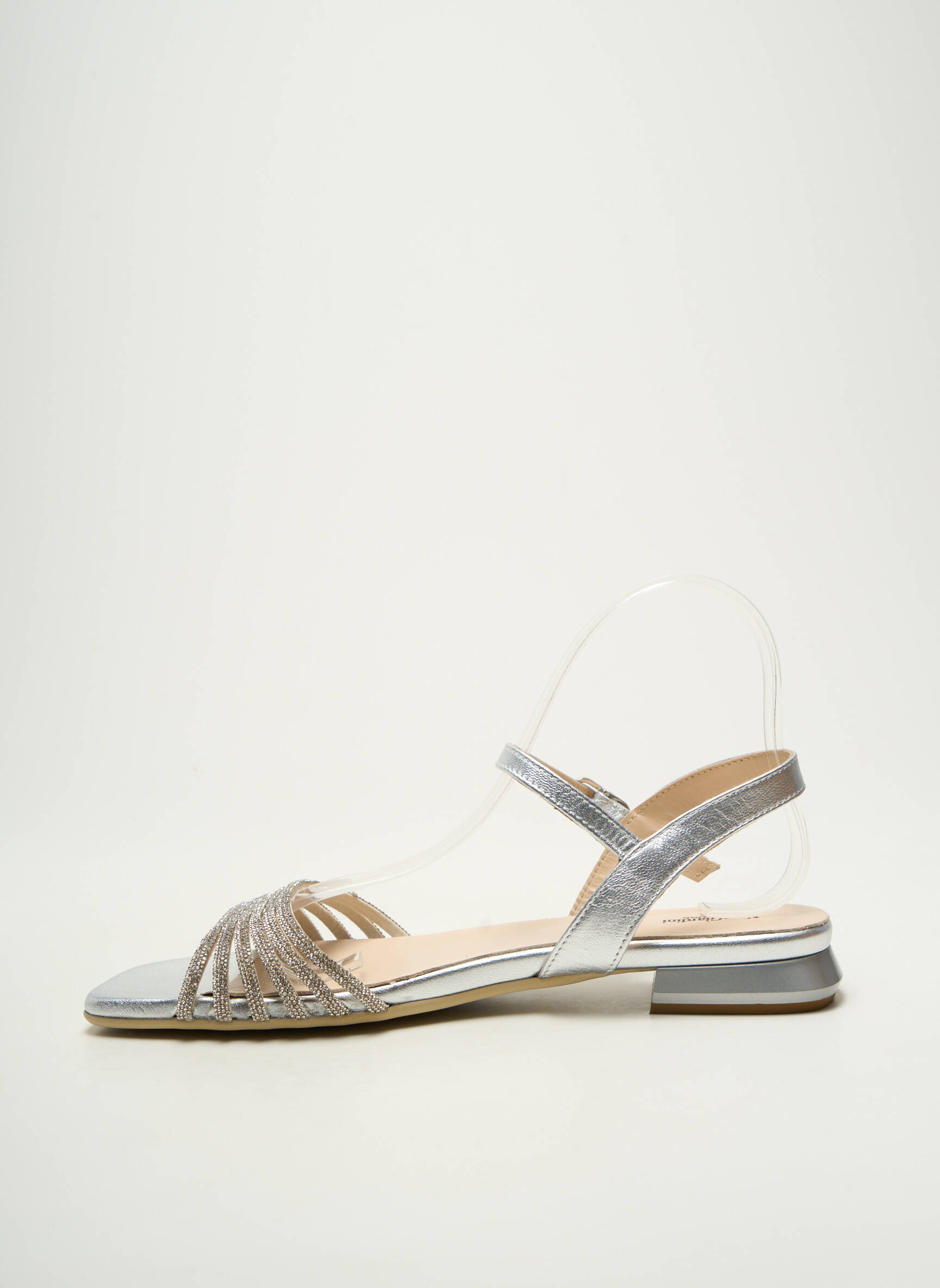 Craquez pour l’élégance à prix mini avec ces sandales signées NERO GIARDINI, un bon plan parfait pour donner une touche sophistiquée à vos tenues estivales sans vous ruiner. Ce modèle chic séduit par sa bride argentée brillante et ses lanières délicatement entrelacées à l’avant, ornées de détails scintillants qui captent la lumière à chaque pas, tandis que la semelle plate assure un confort idéal pour profiter de la journée ou d’une soirée d’été.