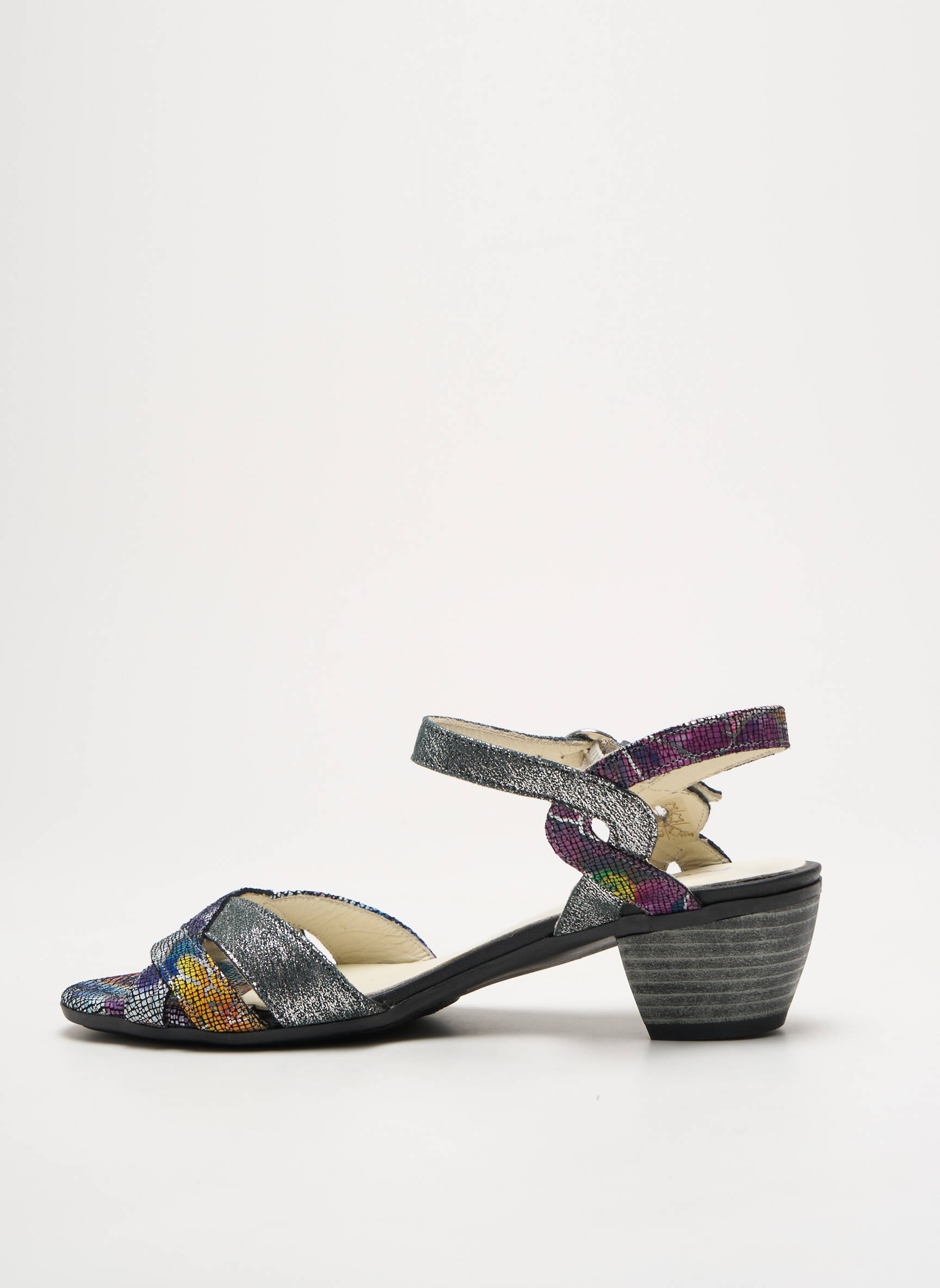 Voici une véritable opportunité à petit prix pour compléter votre dressing d'été avec style : cette sandale à talon signé PEDI GIRL séduit par son imprimé multicolore subtilement métallisé qui capte la lumière à chaque pas. La bride ajustable à la cheville assure un maintien optimal, tandis que la hauteur de talon modérée promet un confort idéal pour toute la journée. Offrez-vous une touche de fantaisie et d’élégance sans vous ruiner grâce à ce modèle aussi tendance qu’abordable.