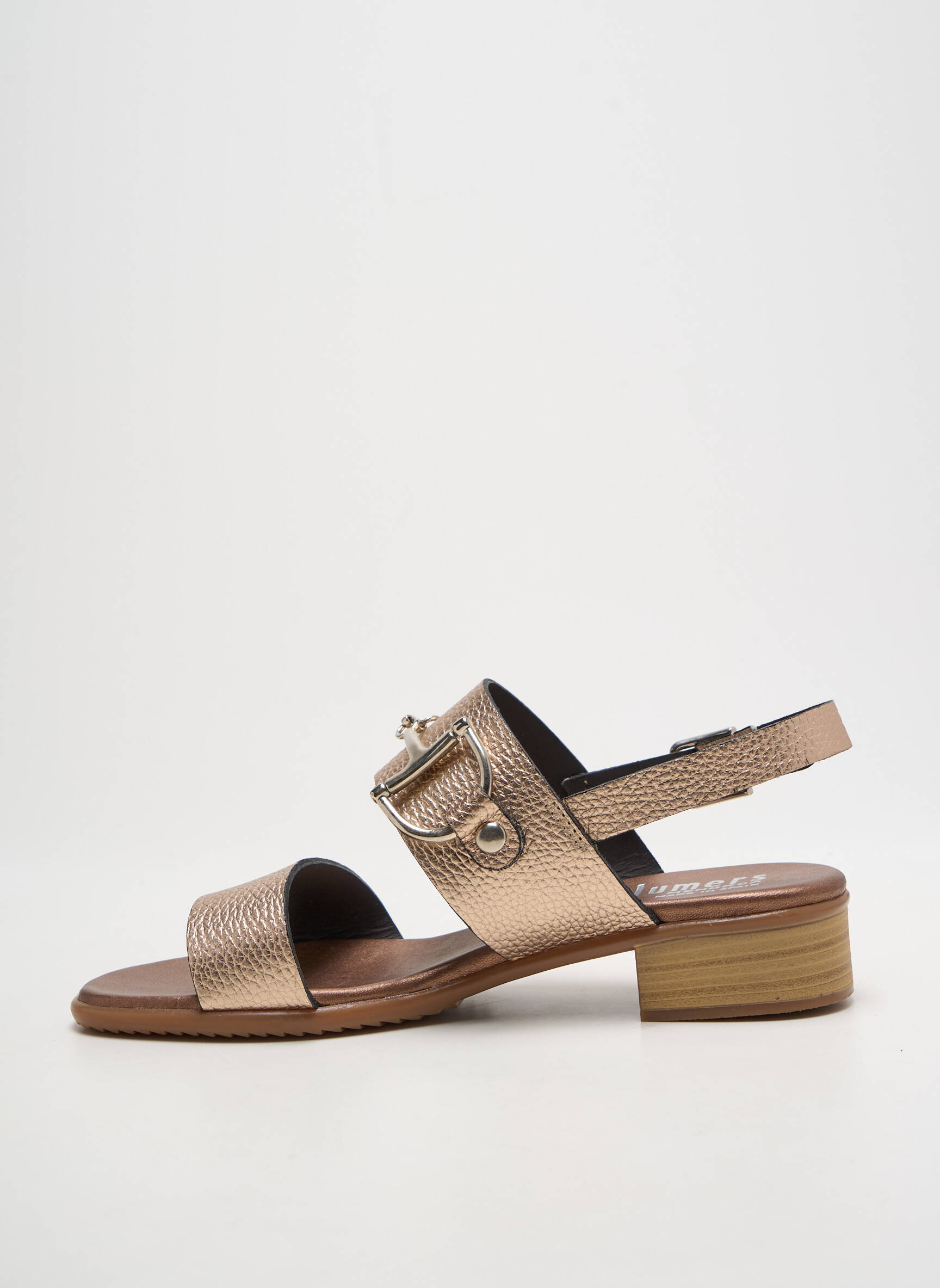 Profitez d’un bon plan à ne pas manquer avec ces sandales PLUMERS pour femme, une pièce tendance au prix tout doux, parfaite pour compléter vos tenues estivales. Élégante avec sa finition métallisée bronze, cette sandale ouverte joue la carte du chic décontracté grâce à ses deux brides larges, rehaussées d'un délicat détail décoratif argenté, et à son petit talon carré ultra confortable. Lanière réglable à la cheville pour un maintien optimal, semelle souple et design soigné, cette paire vous assure un look raffiné à prix malin et accessible.