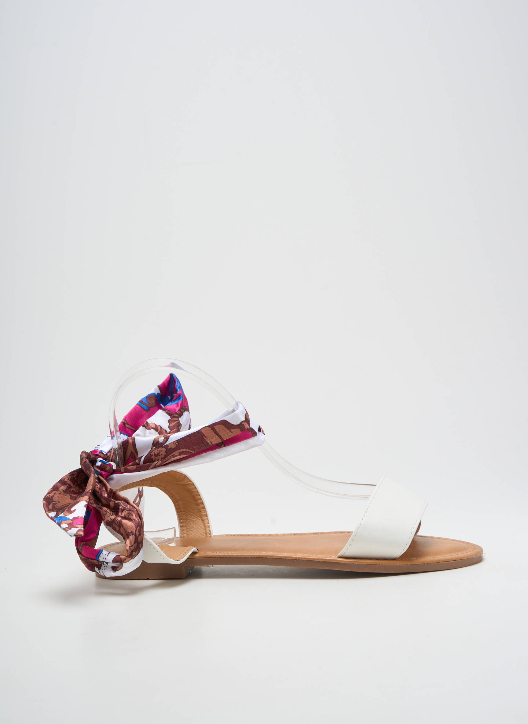 Craquez pour cette sandale QUEEN pour femme, une véritable pépite à prix cassé qui combine style tendance et allure élégante. Son design minimaliste se distingue par une bride transparente à l'arrière sublimée d’un ruban coloré façon foulard noué, détail raffiné qui captera tous les regards lors des beaux jours. Avec sa semelle plate confortable et sa bande blanche sur l’avant du pied, ce modèle est l’allié idéal pour profiter de vos journées estivales sans compromis sur le style, tout en faisant une belle affaire sur votre budget chaussures.