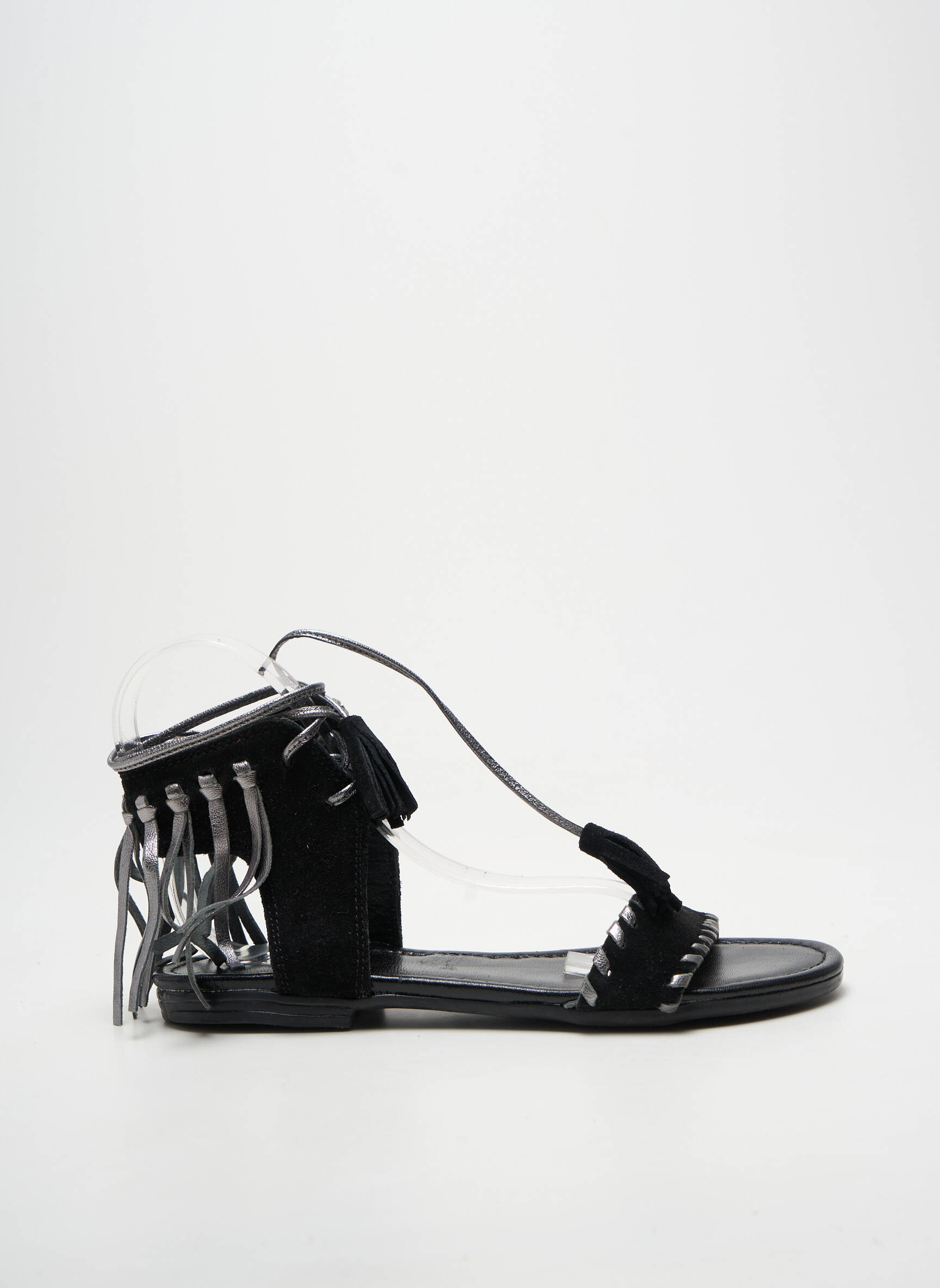 Craquez pour ces sandales REQINS pour femme, un véritable bon plan mode à prix tout doux. Ce modèle nu-pieds allie élégance et modernité avec sa silhouette noire raffinée relevée par de jolis détails métalliques et des franges originales à l'arrière, parfait pour ajouter une touche tendance à toutes vos tenues d’été sans vous ruiner. Profitez d’un style sophistiqué et confortable sans compromis sur votre budget.