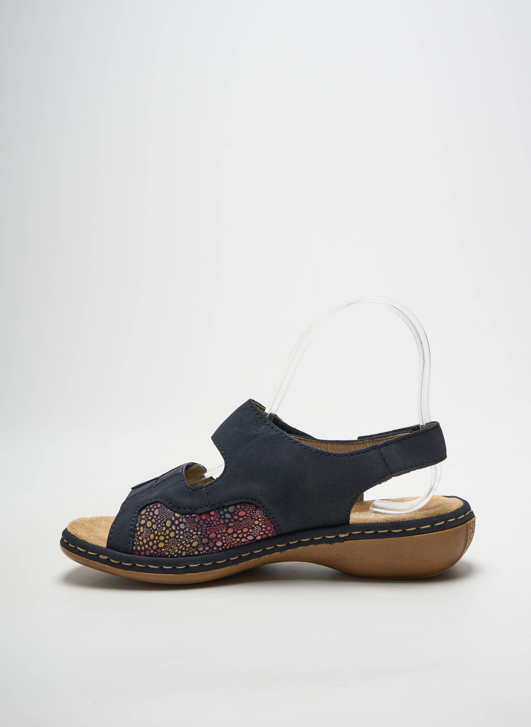 Craquez pour ces sandales RIEKER pour femme, une véritable opportunité à prix mini pour profiter du confort au meilleur tarif. Leur design tout en douceur mêle une semelle ergonomique légèrement compensée et des brides bleu marine décorées de motifs colorés et de perles, pour un rendu dynamique et élégant. Faciles à enfiler grâce à leur fermeture velcro, elles offrent un ajustement parfait tout au long de la journée tout en ajoutant une touche d’originalité à vos tenues estivales. Une véritable affaire pour allier style, bien-être et économies.